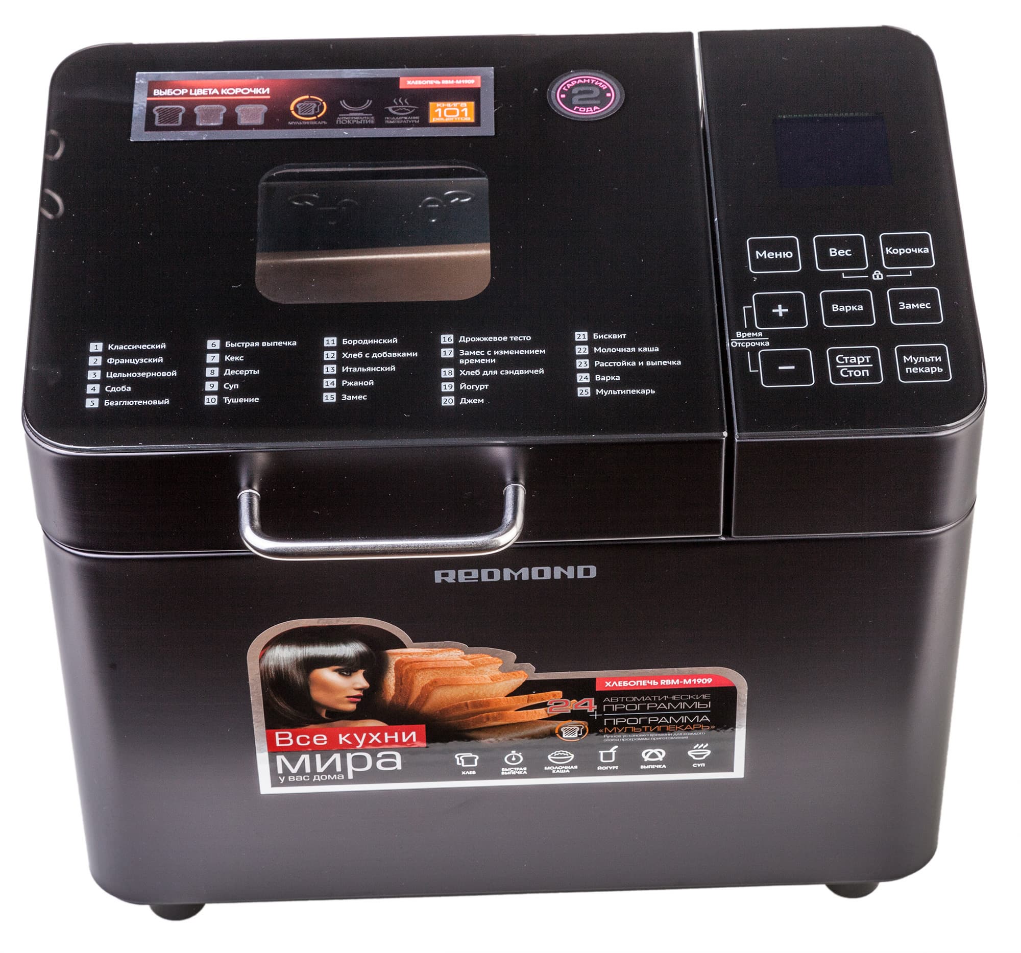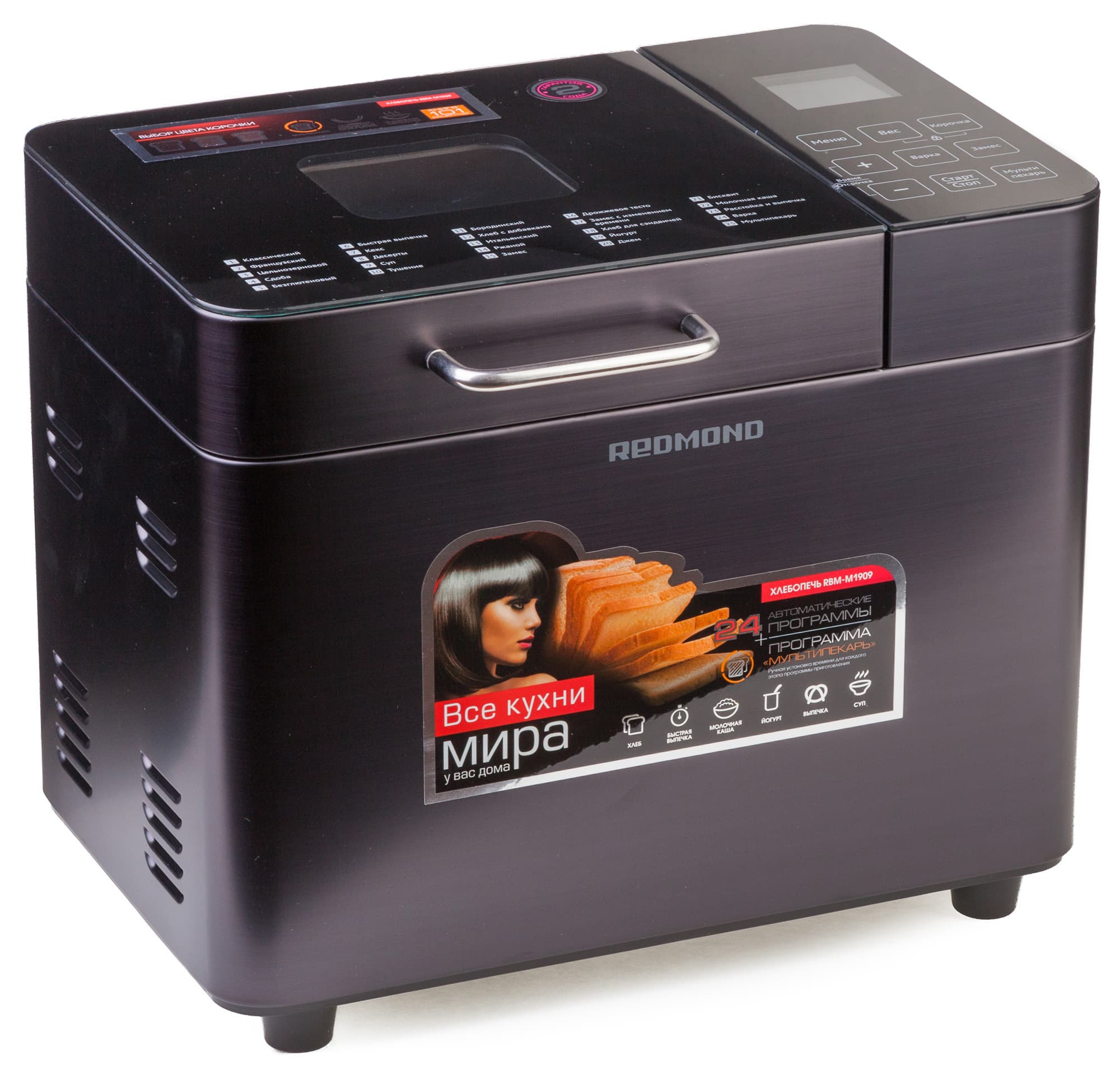 На первый взгляд хлебопечь Redmond RBM-M1909 выглядит как надежное, приятное в использовании и не очень сложное в управлении устройство.
