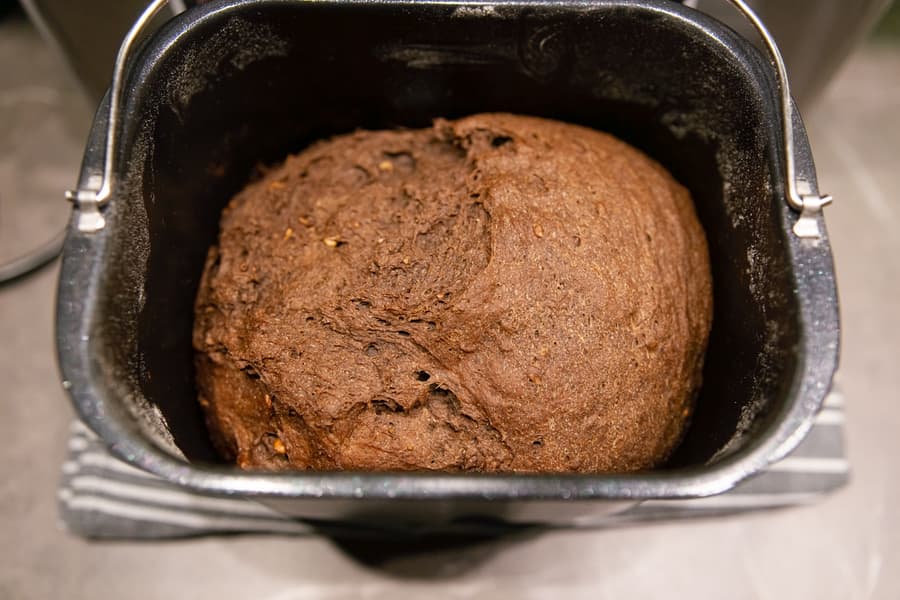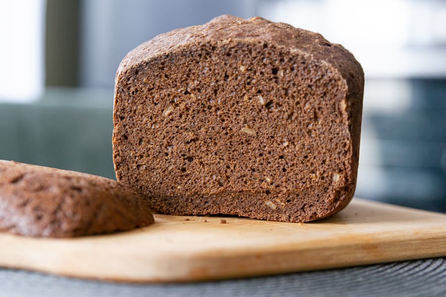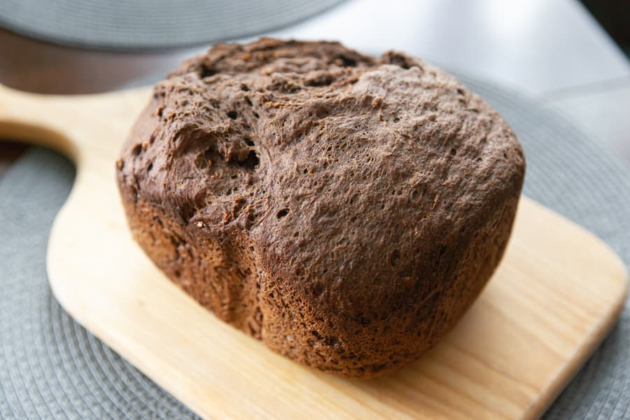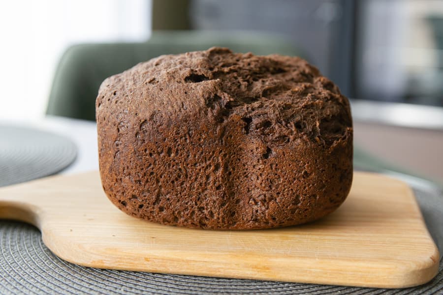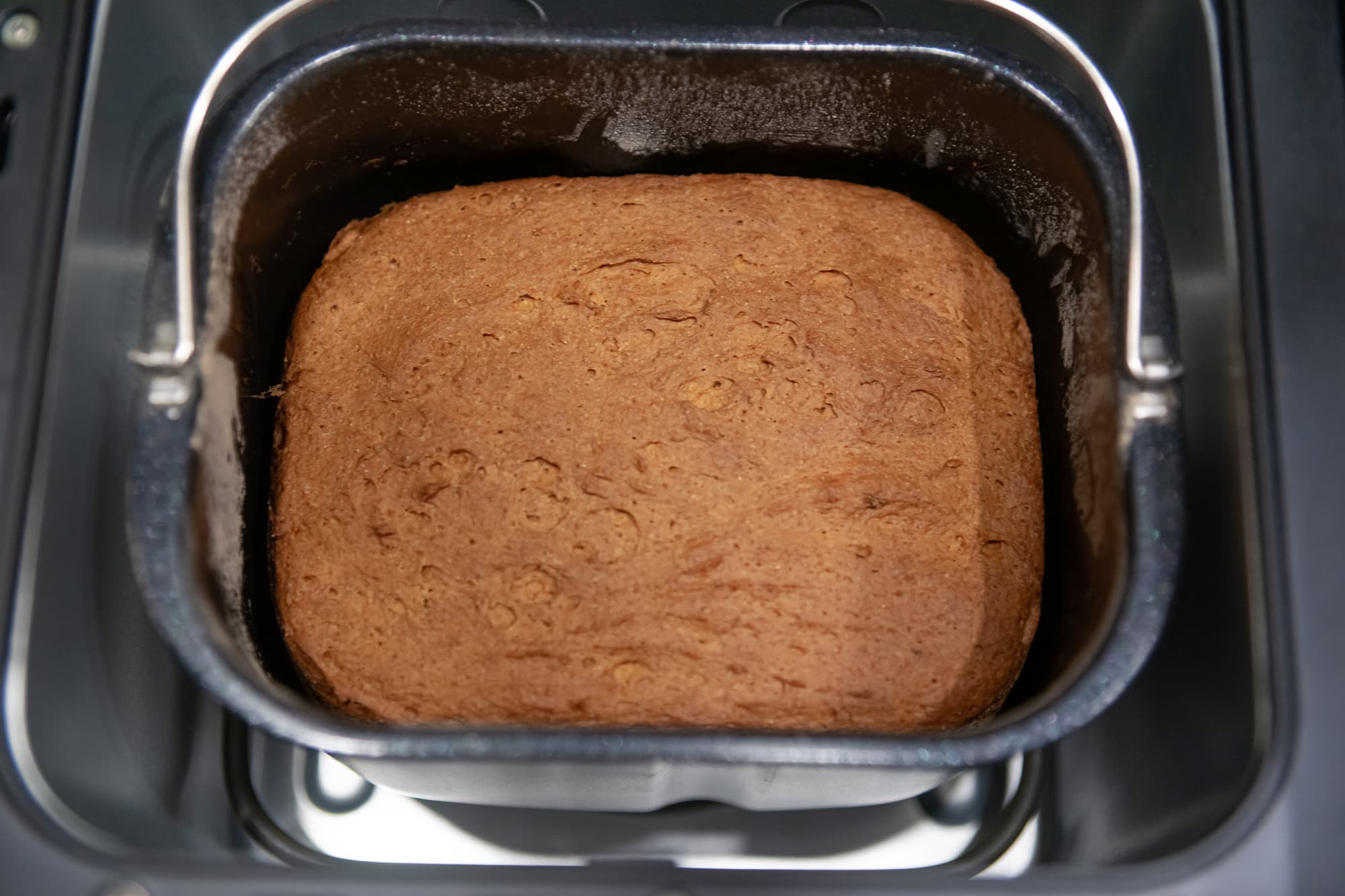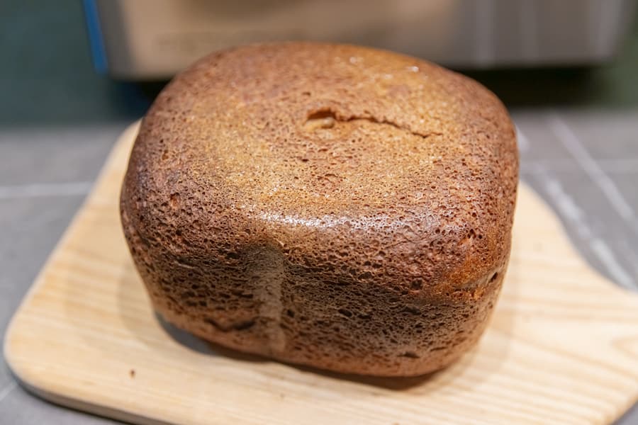 Хлеб выпекался на программе №14 (Ржаной хлеб), вес установили на уровне 750 г, цвет корочки — средний.
