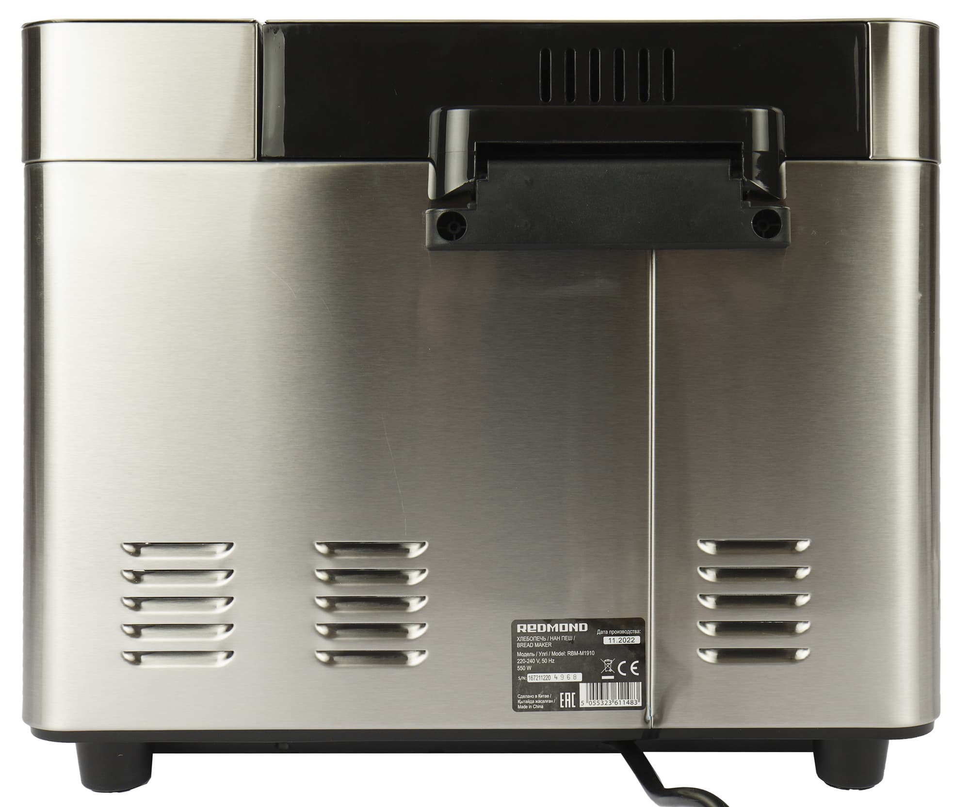 Конструкцию хлебопечи Redmond RBM-M1910 можно назвать типовой. Минималистичный корпус в форме параллелепипеда со скругленными углами выполнен из нержавеющей стали.