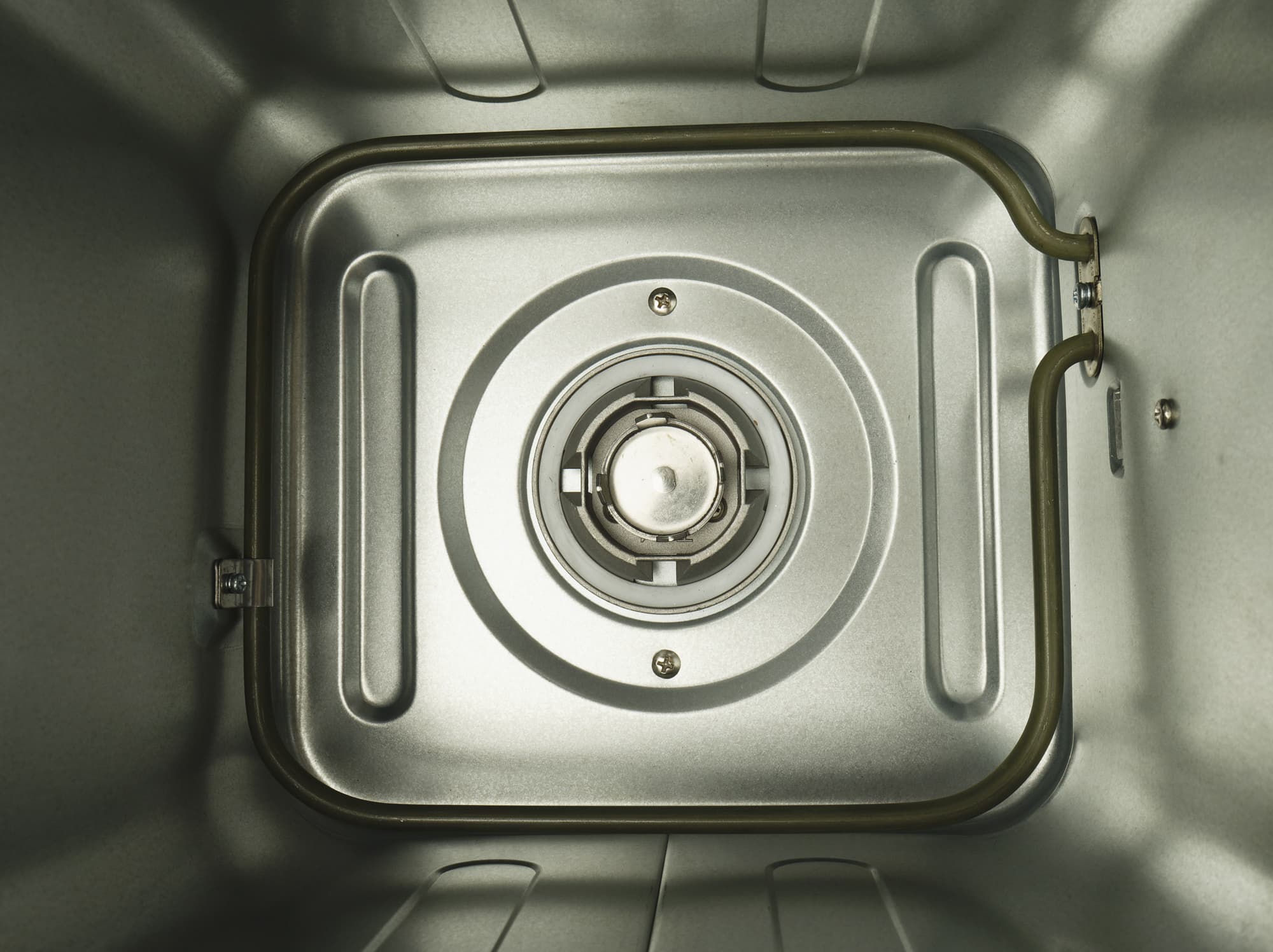 Внутри рабочей камеры покрытой металлом на дне вдоль стенок закреплен нагревательный элемент. Посередине находится байонет для установки чаши.