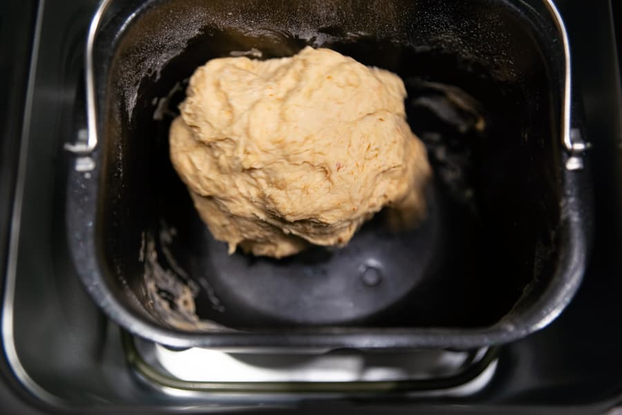 Ингредиенты: мука пшеничная — 325 г, соль — 5 г, сахар — 8 г, масло растительное — 25 мл, вода — 200 мл, сухие дрожжи — 5 г