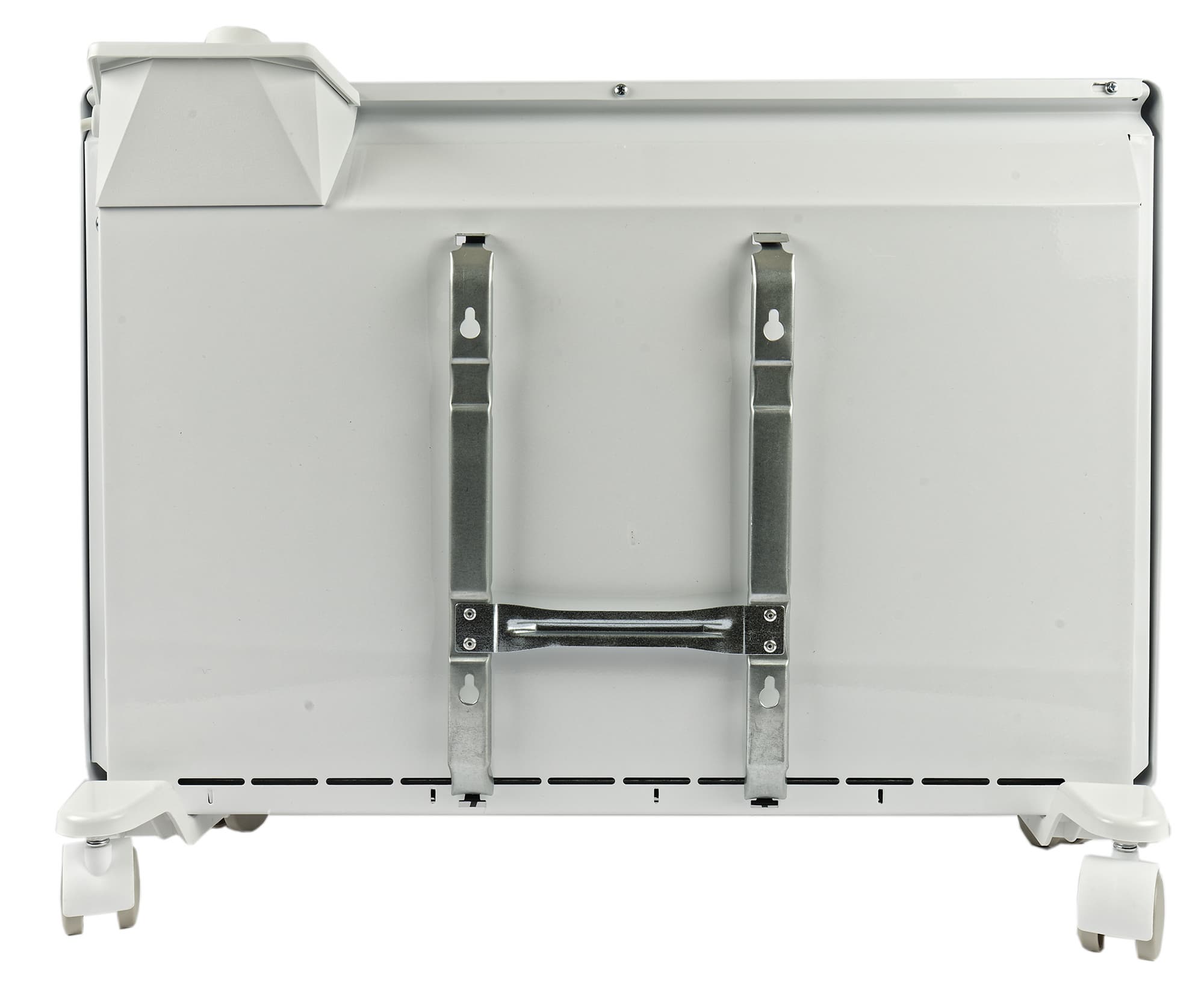 Для крепления на стену сзади прибора предусмотрена металлическая рама с отверстиями для подвеса. Так как конвектор весит всего 4 кг, усиленного крепежа не потребуется.