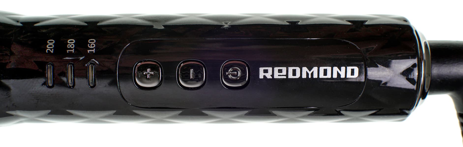 Ручка не скользит в руках, держать прибор удобно. В рабочем положении зажим приходится ровно под указательный палец, так что панели раскрываются без усилий. На ручке со стороны зажима расположены кнопки включения и регулировки, а также индикаторы температурных режимов.