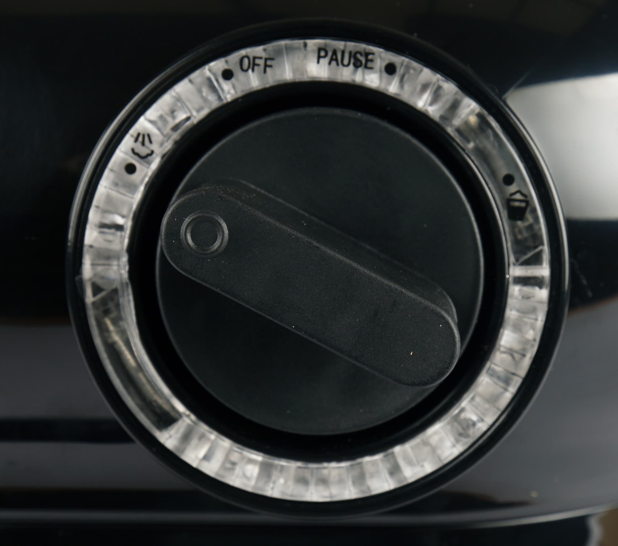 Единственный орган управления кофеваркой — механическая ручка, расположенная на правой грани корпуса и отвечающая за переключение режимов. В процессе работы ручка подсвечивается яркой светодиодной подсветкой синего цвета.