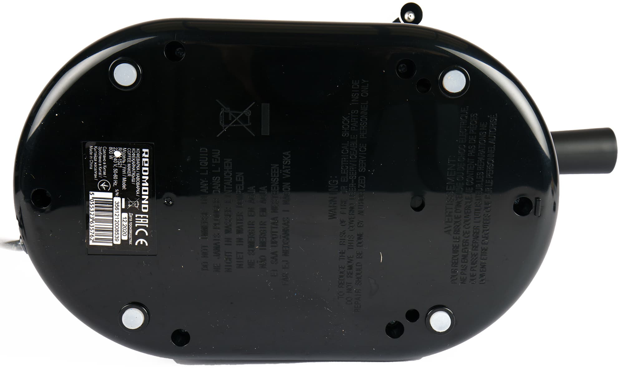 Снизу у прибора имеются четыре резиновые нескользящие ножки. Там же расположена наклейка с технической информацией.