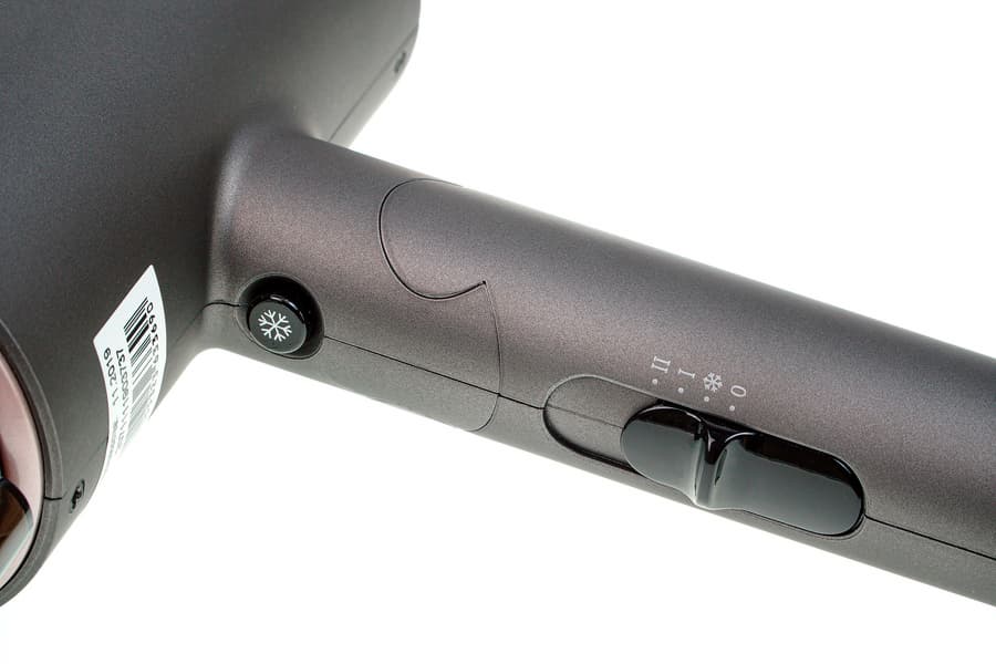 Два элемента управления — переключатель режимов и кнопка подачи холодного воздуха находятся в привычном месте — на внутренней стороне ручки. Переключатель удобно ложится ровно под большой палец руки, так что по ходу эксплуатации пользователь может без усилий менять режим работы фена.
