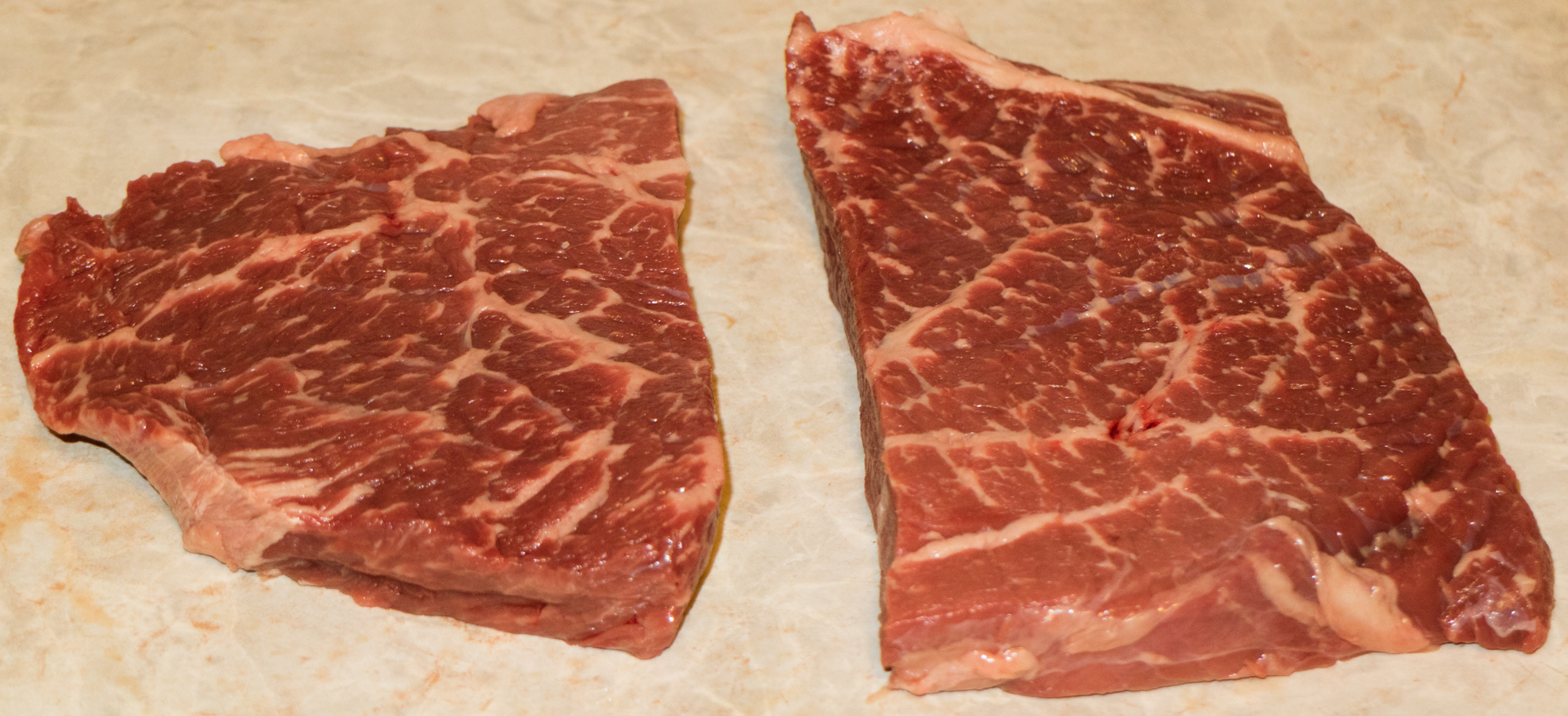 Разделали подходящий по качеству кусок говядины на два стейка толщиной примерно в 2 см.