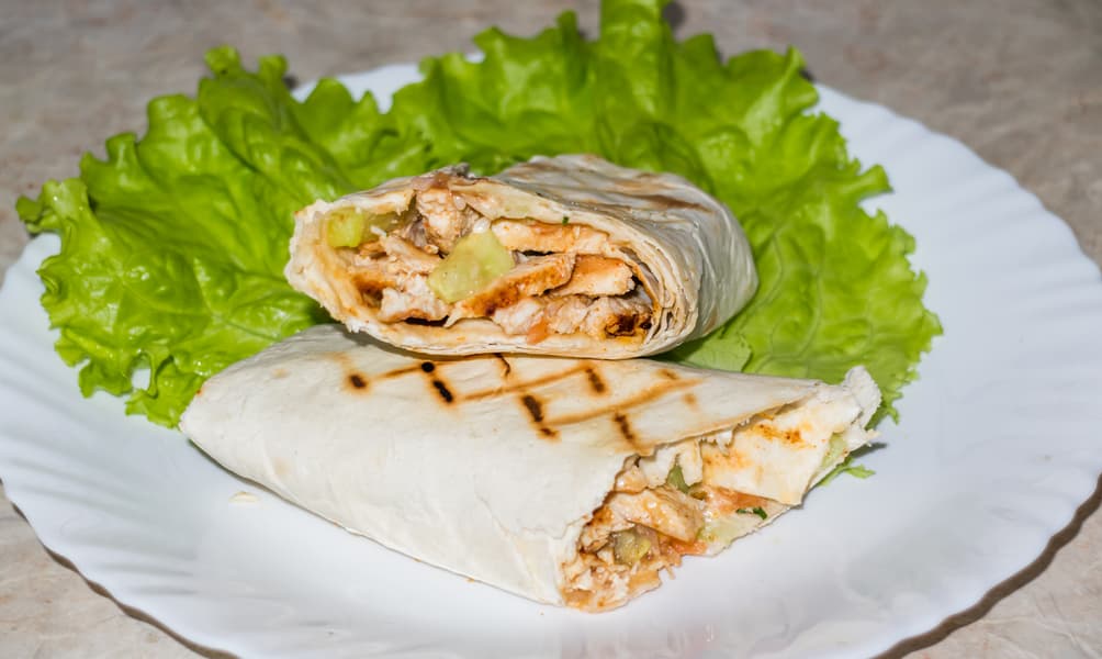 Лаваш снаружи подсушен и хрустит, соус внутри не перегрет, овощи не потеряли свои свойства, но в то же время немного прогрелись. Так что советы книги рецептов вполне адекватны — в ней рекомендуется поджаривать шаверму в течение 3 минут на 230 °C. Думаем, за это время блюдо достигнет нужной степени прогрева.