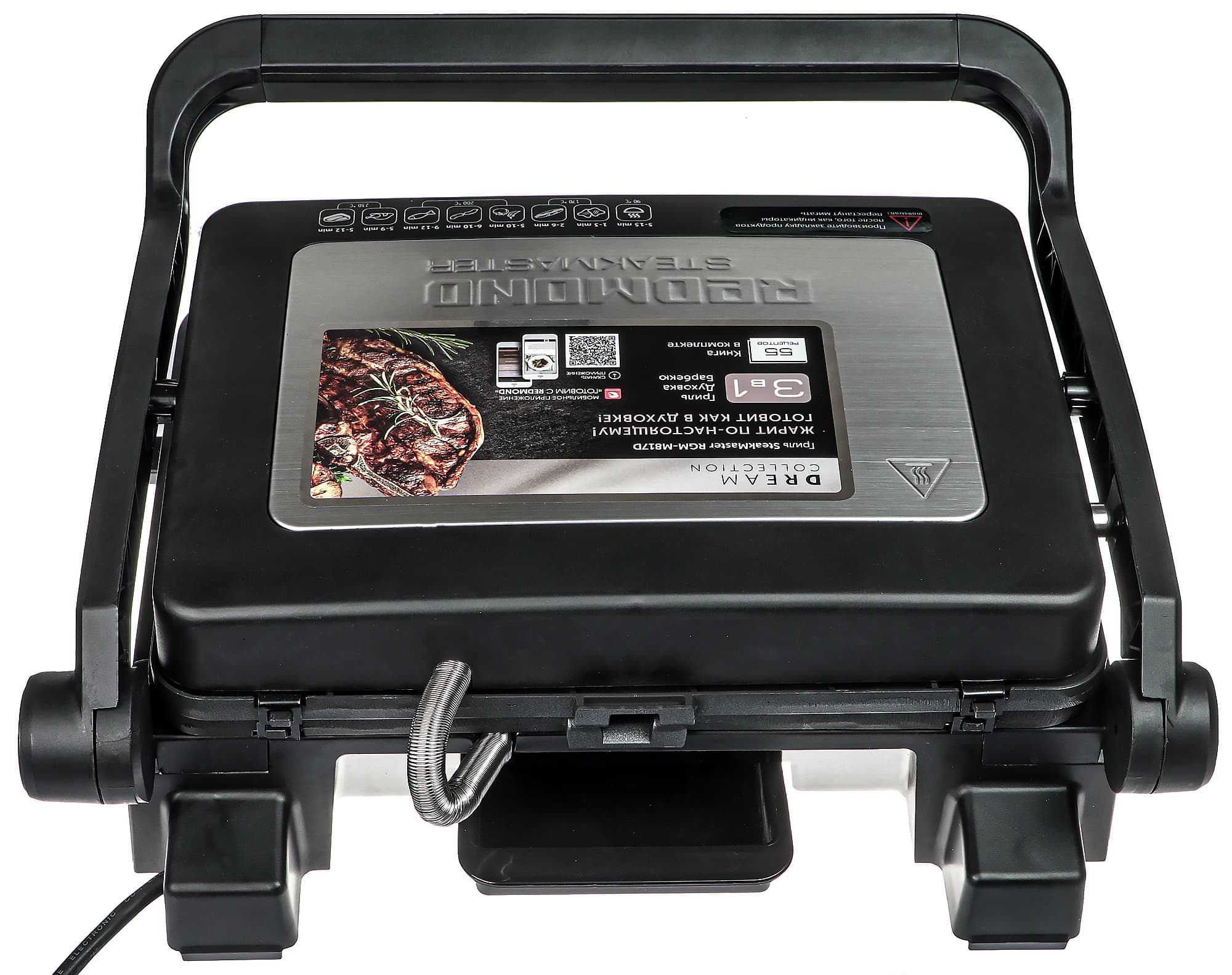 Вообще эксплуатация Redmond SteakMaster RGM-M817D совсем несложна: установить параметры работы, когда перестанут мигать индикаторы, уложить продукт, прижать крышку, немного подождать — вуаля! Быстро, нежирно, практически без участия пользователя.