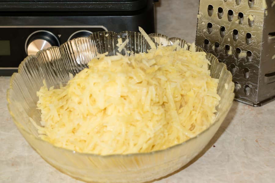 Поэтому перед закладкой следующей порции смазали панели маслом обильнее. Со второй порцией проблем при снятии картофельных лепешек не возникло.