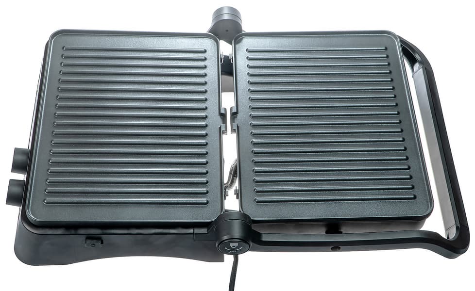 Из того, что нам не понравилось, отметим неплотное прилегание панелей к корпусу и антипригарное покрытие. Во время тестов к нему ничего особо не прилипало, особенно если смазать панели маслом, но на ощупь покрытие слегка шероховатое. Возможно, поэтому после работы гриля в разложенном виде нам пришлось замачивать панели, чтобы удалить запекшийся сок и жир.