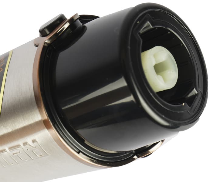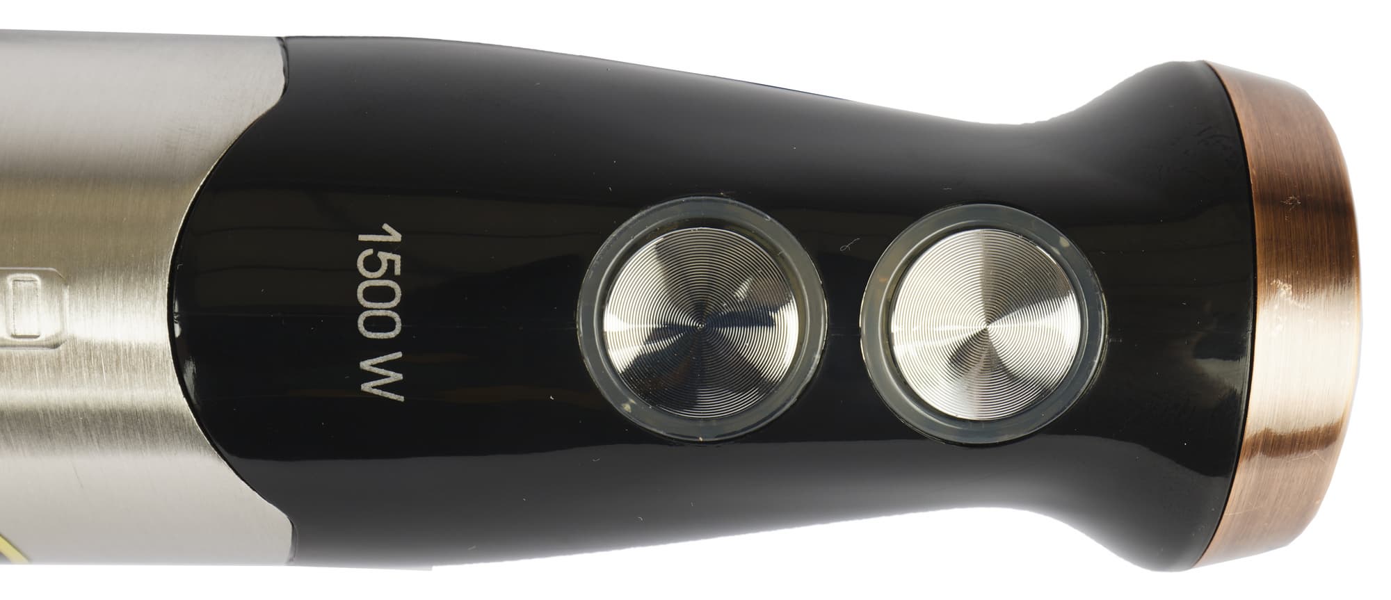 Декоративные «бронзовые» вставки имеются в верхней части (у ручки управления скоростями) и внизу (в месте крепления насадок), кнопки управления — пластиковые, выполненные под металл. Вокруг кнопок имеется светодиодная подсветка.