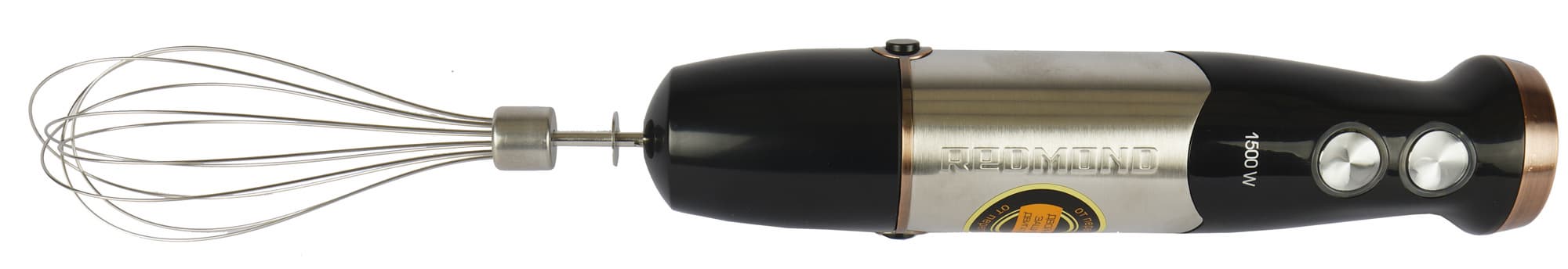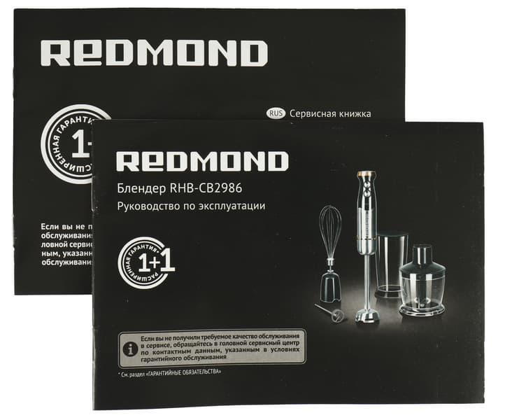Герой нашего сегодняшнего обзора — вполне классический блендер «3 в 1», оснащенный стандартной насадкой для блендирования, венчиком для взбивания и чашей для измельчения (с двухлопастным ножом). В общем, и форма, и конструкция, и комплектация у Redmond RHB-CB2986 классические. Никаких сюрпризов, с нашей точки зрения, тут не предвидится. Единственный не совсем обычный аксессуар — венчик для взбивания молочной пены — должен понравиться любителям кофейных напитков с молоком. Так что прибор имеет полное право называться «4 в 1», а не «3 в 1».