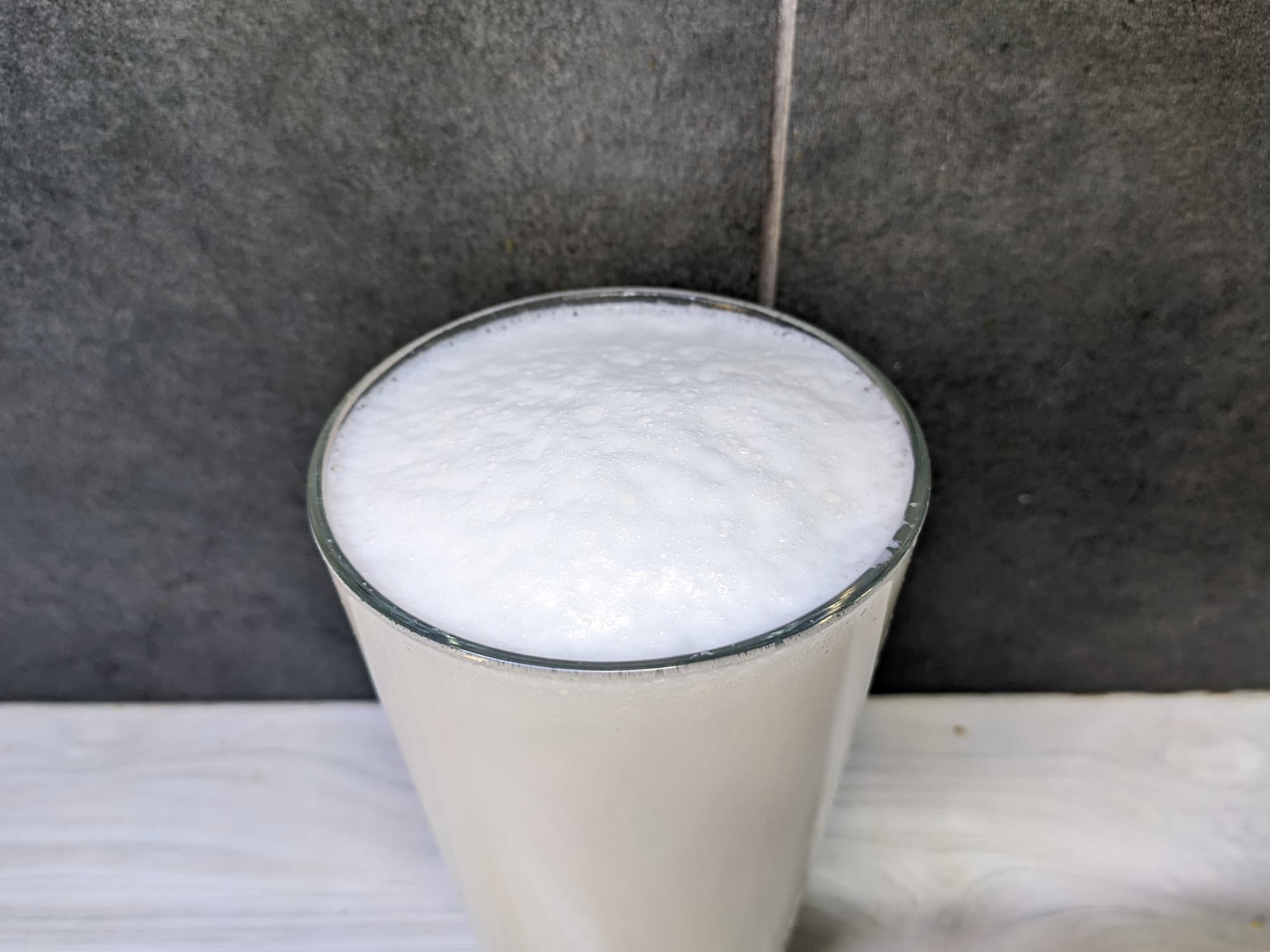 Пена получилась что надо: густая, пышная, без крупных пузырьков.