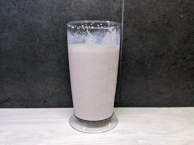 Затем долили нужное количество молока и приступили к блендированию, постепенно повышая скорость.