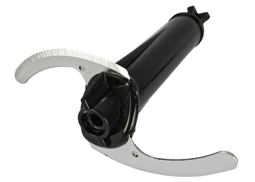 Довольно простой на вид двухлопастной нож из нержавеющей стали прячется под колпаком сложной формы, имеющим четыре прорези (видимо, они должны способствовать перемешиванию продуктов). Лопасти ножа симметричны и заточены с одной из сторон.