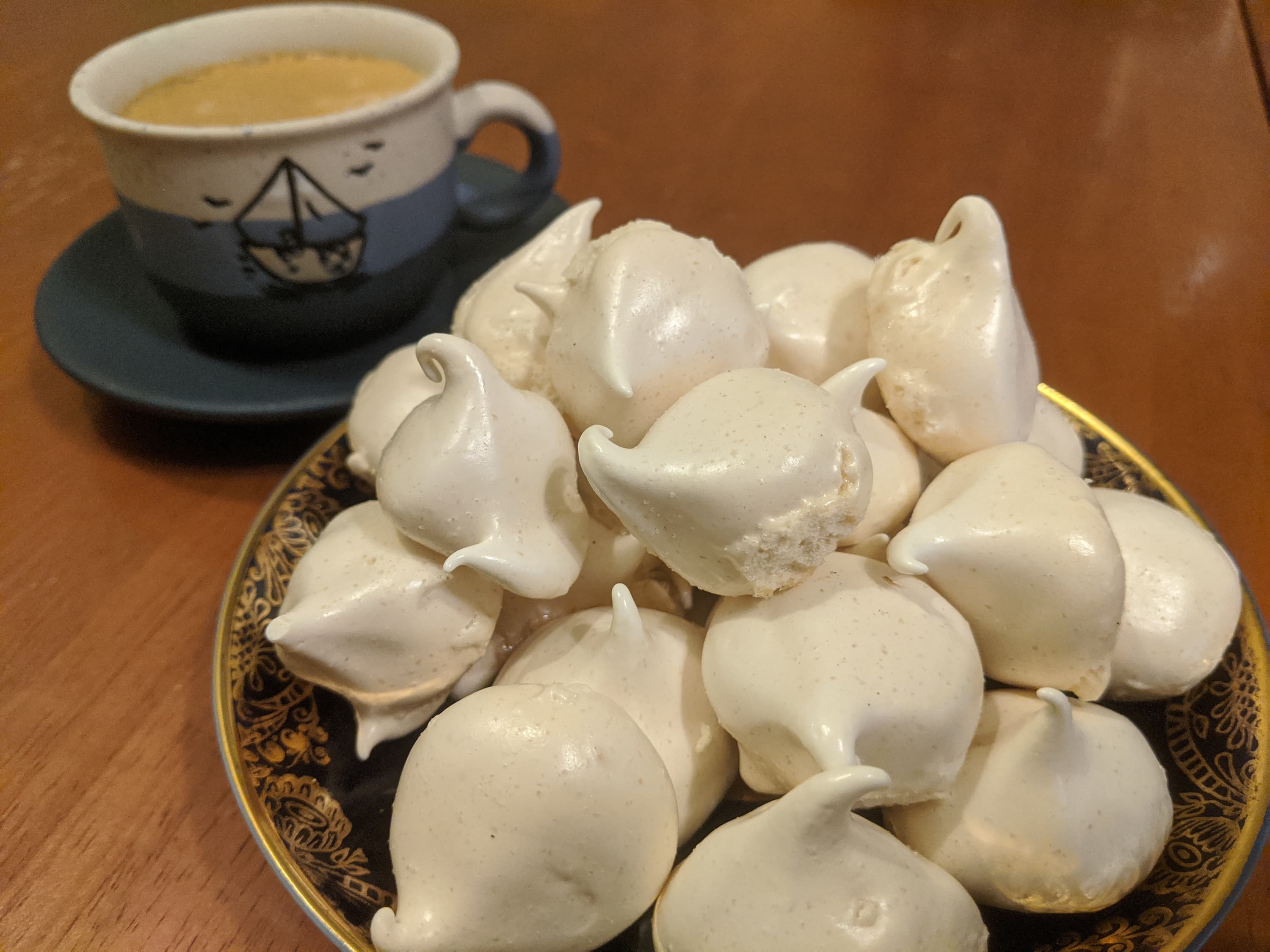 Меренги — а у нас получились именно они — выпекали (или, скорее, подсушивали) в течение двух часов при температуре 100 °C.
