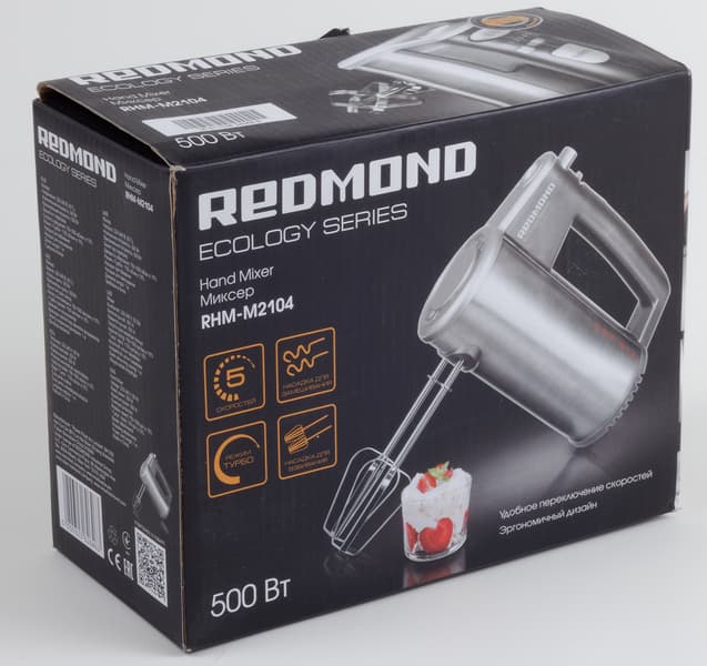 У нас на тестировании ручной миксер Redmond RHM-M2104 из экологической серии. Говорят, его основная особенность — хорошо продуманный эргономичный дизайн. Посмотрим, насколько этот прибор будет удобен на кухне.