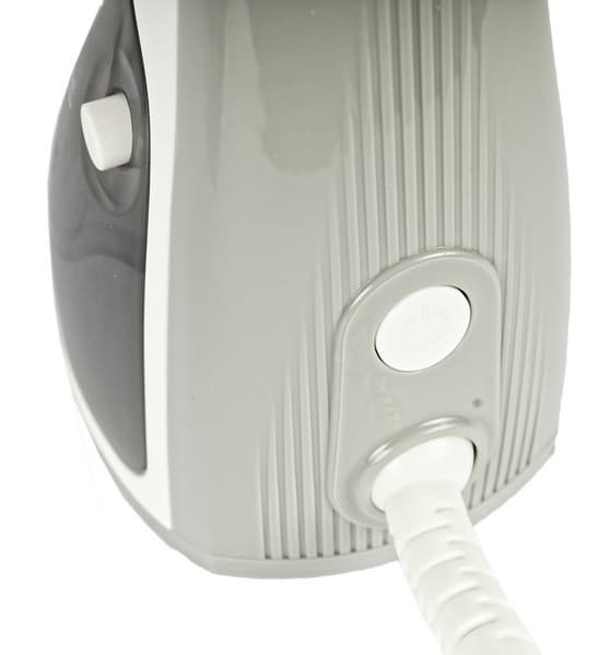 Прибор комфортно держать в руке. Мы пробовали работать с ним на весу, то есть удерживая плечики с джемпером в одной руке, второй рукой работая прибором. Это тоже радикально, но реально, а значит, в условиях, приближенных к экстремальным (купейный вагон, гостиничный номер) отпариватель окажется незаменимым помощником.