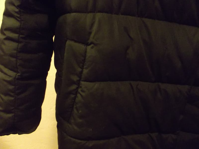 Снимок, к сожалению, плохо передает результат: подобную черную ткань трудно фотографировать. А так RHS-6802 отлично справился с легкими загрязнениями, обновил цвет и форму куртки, пар удалил въевшиеся запахи уличной грязи и никотина. Самое сложное место у зимних курток — зона карманов. Она не стала препятствием для прибора.