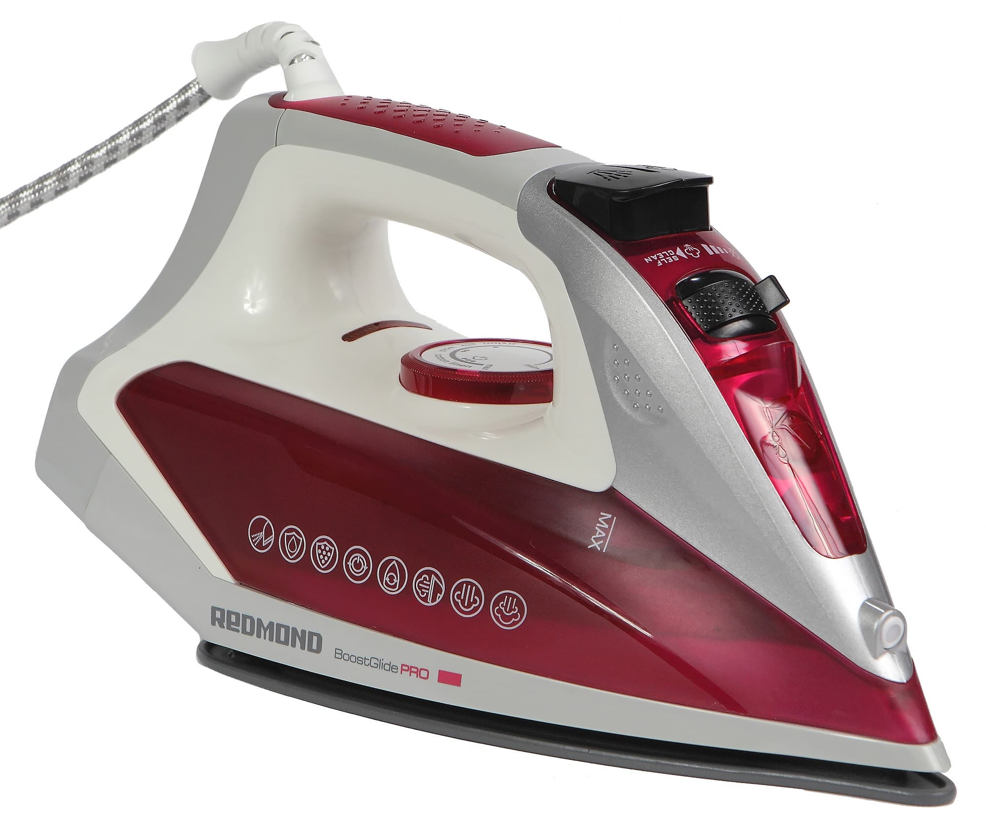 Утюг Redmond RI-C266 соответствует всем перечисленным требованиям, а также оснащен рядом дополнительных функций: капля-стоп, анти-накипь, самоочистка. При необходимости можно также воспользоваться вертикальным отпариванием. Основное отличие от его собратьев по линейке — съемный резервуар для воды.