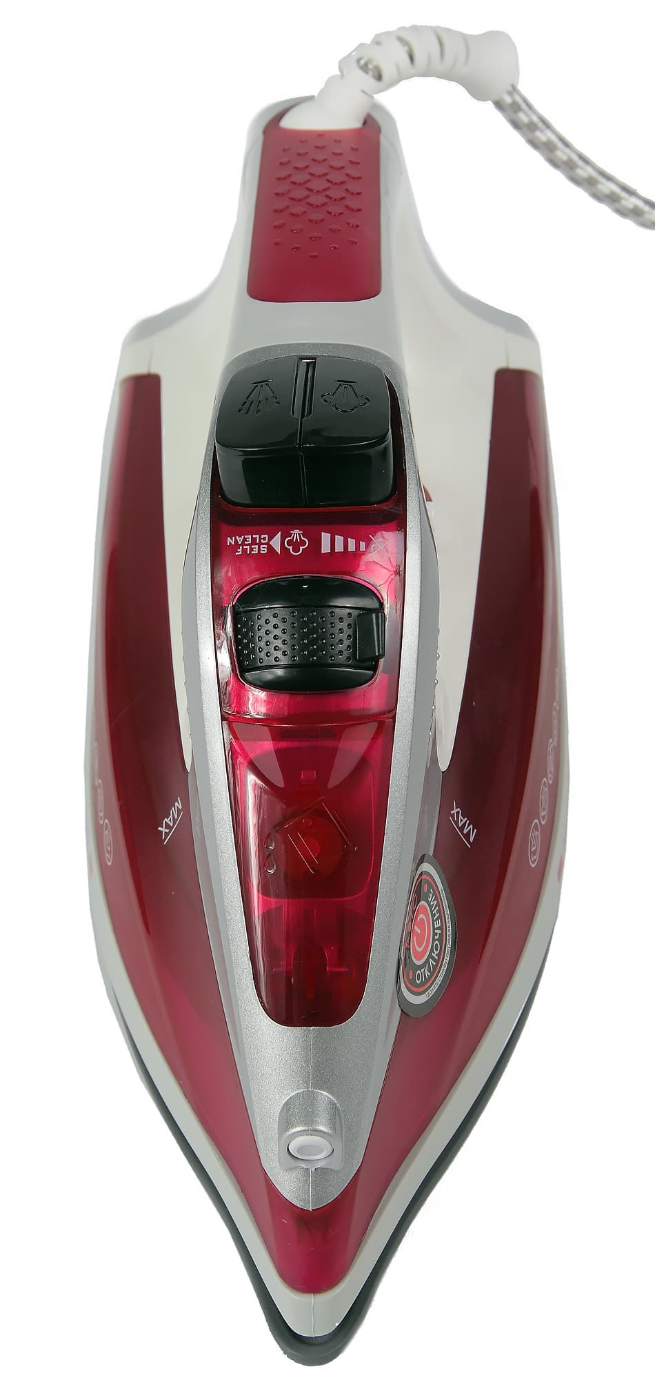 Нельзя недооценить важность функции автоматического отключения при простое. Удобная форма подошвы с узким носиком позволяет разгладить самые труднодоступные или мелкие элементы одежды. Съемный резервуар для воды мало того что удобен при заполнении, так еще и предотвращает попадание воды внутрь корпуса прибора или на шнур.