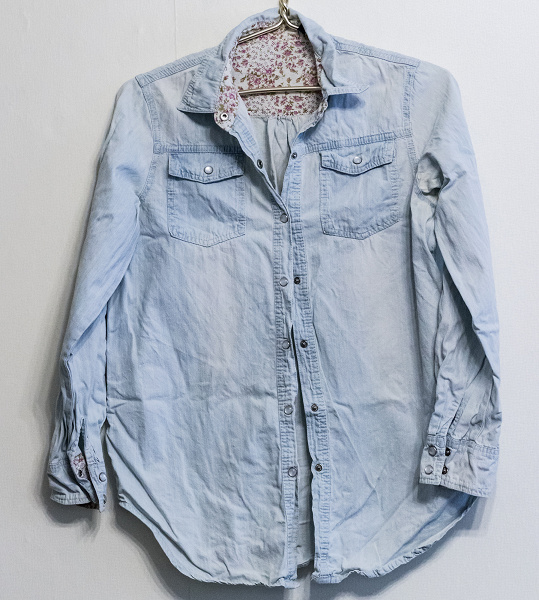 Этот предмет одежды долго хранился в шкафу в мятом виде. Ткань сама по себе не слишком простая, а уж разгладить рубашку после такого хранения — задача не самая тривиальная.