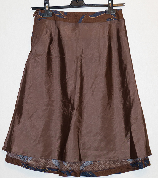 Юбка не простая, а с подкладом из полиэстера. Так что в данном тесте мы сможем оценить качество глажения сразу двух проблемных тканей — льна и синтетики.