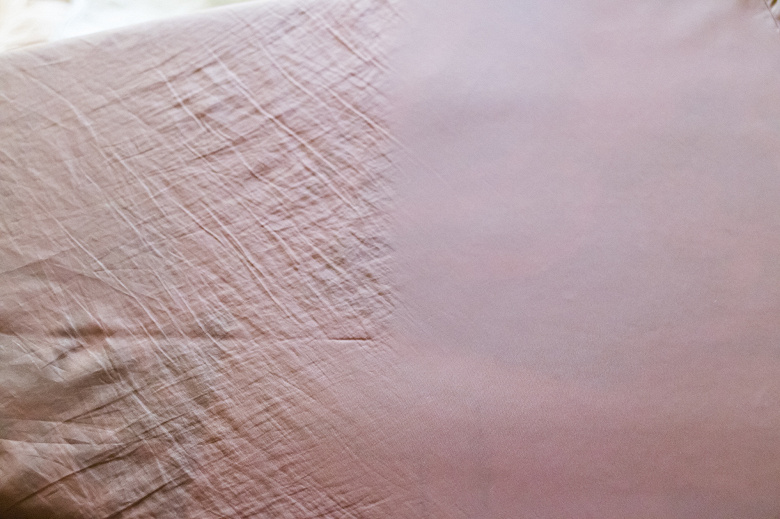 Задали режим «linen», вывернули регулятор подачи пара на максимум и начали гладить. Быстрая глажка на льне не дает результата, поэтому перемещали утюг медленно, следя, чтобы все морщины и заломы были расправлены. На особо упорные замятия подавали паровой удар.