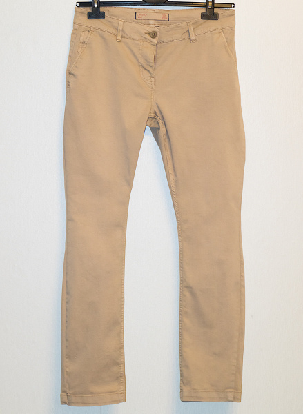 Брюки изготовлены из тонкой светлой джинсовой ткани, которая легко мнется и не очень легко гладится. На джинсах видны четкие следы от стирки и сушки.