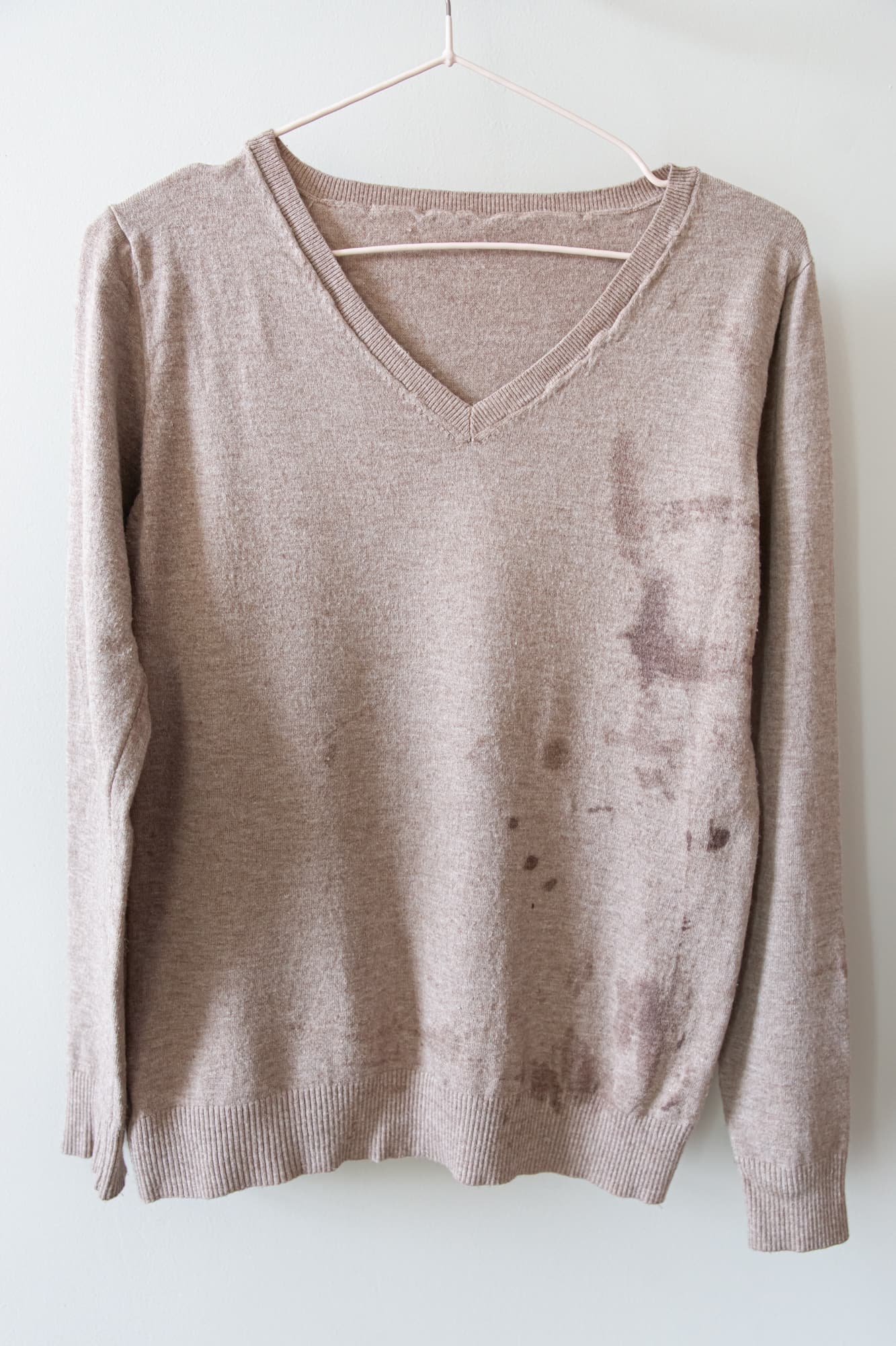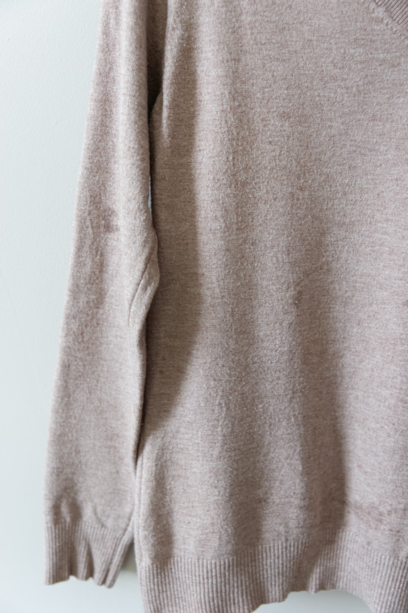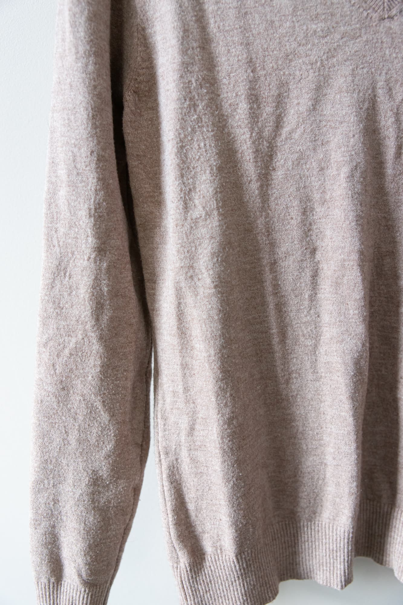 На джемпере в состав которого входят: хлопок, вискоза, нейлон и кашемир, мы решили опробовать вертикальное отпаривание. Натягивая нижний край изделия свободной рукой мы подносили утюг почти вплотную к материалу и нажимали на кнопку подачи интенсивного пара. Сильные короткие струи пара быстро выравнивали мятую материю и довольно скоро джемпер был приведен в полный порядок. Вода из сопел утюга в процессе отпаривания попадала не только на ткань, но и на пол.