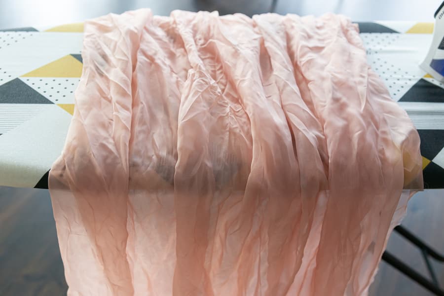 Перед тестом отрез органзы был намочен, скручен в узел и просушен на батарее в течение пары суток.