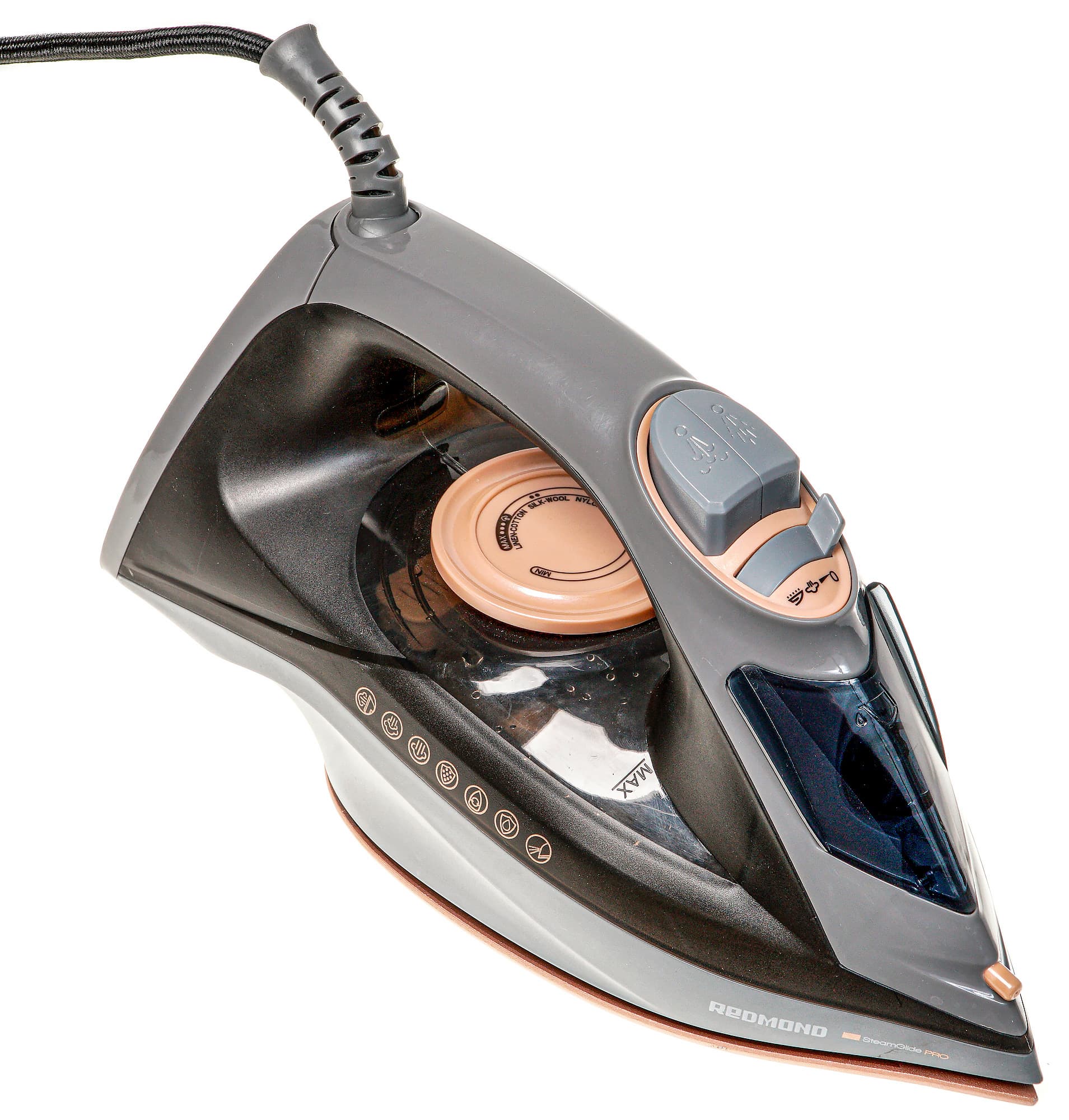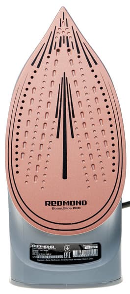Redmond RI-C285 выглядит и ведет себя как обычный недорогой утюг и по качеству изготовления и сборки, и по функциональности. Прибор оснащен множеством основных и дополнительных функций: двумя уровнями постоянной подачи пара, регулируемым нагревом подошвы, разбрызгивателем, создающим чрезвычайно мелкие брызги, мощным паровым ударом, который позволяет использовать утюг в качестве вертикального отпаривателя, системами «Капля-стоп» и самоочистки. В перечне функций не хватает лишь одной — автоматического отключения при бездействии. Отметим комфортный вес утюга и форму подошвы, которая позволяет без усилий разгладить мелкие и конструктивно сложные элементы одежды. До максимальной температуры утюг нагревается всего за 30 секунд.