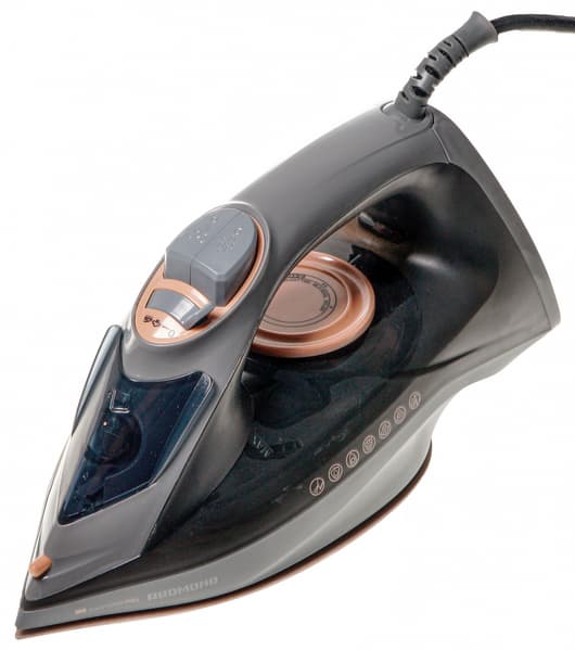 На первый взгляд Redmond RI-C285 практически не отличается от типовых утюгов: корпус с подошвой, резервуаром для воды и терморегулятором, ручка с элементами управления на ней и длинный шнур с кожухом для противодействия сгибанию. Единственное, что сильно отличает его от своих собратьев — это вес. По субъективным ощущениям утюг легкий. Корпус выполнен в черно-серой гамме. Внешний вид оживляют подошва и мелкие детали бронзового цвета.
