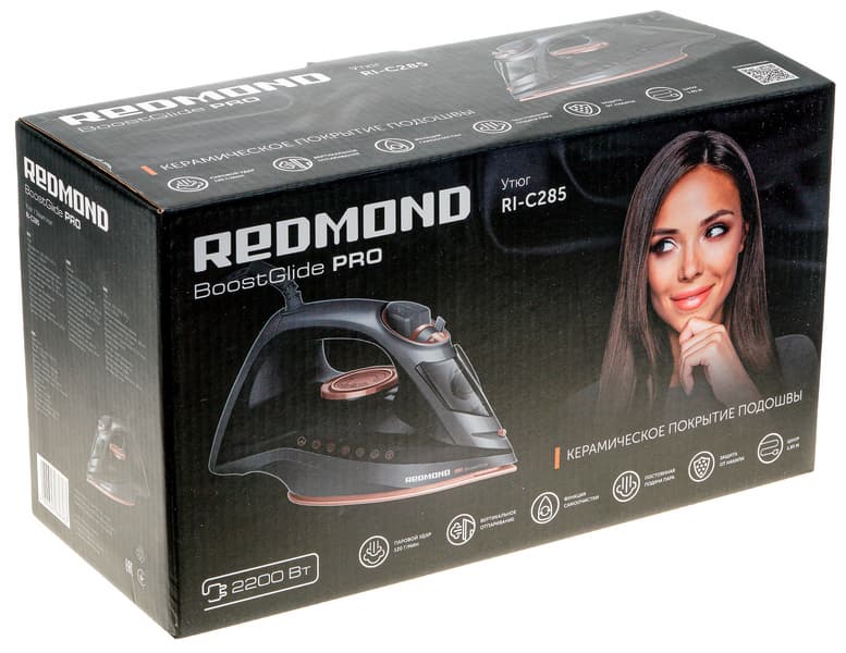 Производитель характеризует утюг Redmond RI-C285 как «современное устройство в изящном дизайне». Возможно, так оно и есть, поскольку он обладает всеми свойствами обычных утюгов, произведенных в настоящее время: высокая мощность и быстрый нагрев, керамическое покрытие подошвы и мощный паровой удар, вертикальное отпаривание и система защиты от протечек и накипи. В списке функций отсутствует лишь автоотключение, так что прибором лучше пользоваться людям, которые могут без запинки ответить на вопрос, отключили ли они утюг перед уходом из дома.