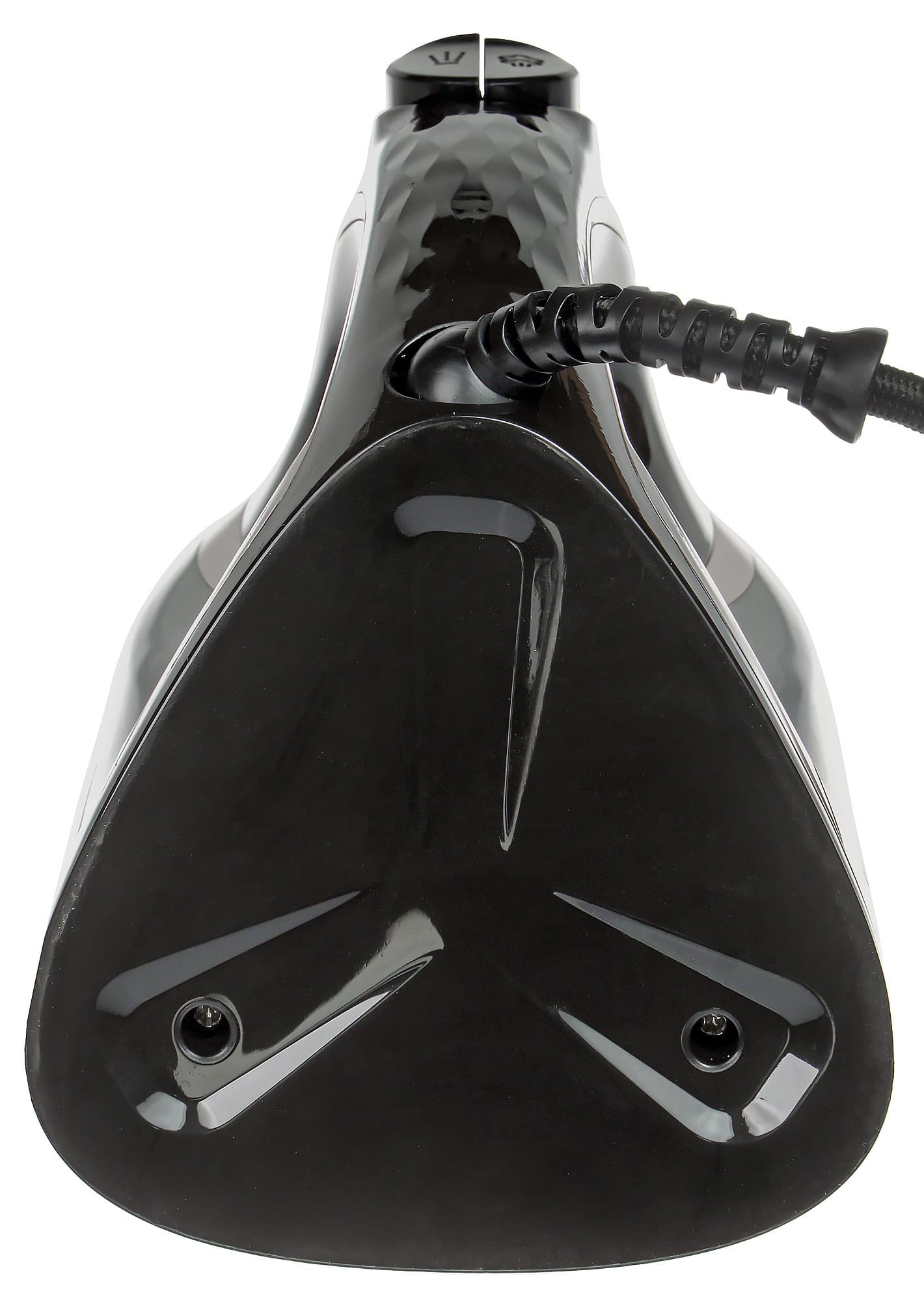 Основание утюга выполнено в форме треугольника со скругленными углами. Вообще, несмотря на отсутствие каких-либо противоскользящих накладок, утюг достаточно устойчиво располагается на поверхности. При надавливании, конечно, двигается, но во время работы утюг, как правило, находится в горизонтальном положении, либо ограничен площадью приставки гладильной доски.
