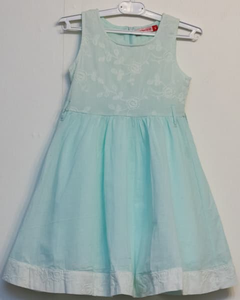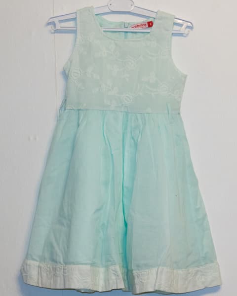 Для начала мы решили отпарить детское платье. Ткань хлопчатобумажная, крой не самый простой, поэтому легче всего такую вещь, конечно же, обработать бесконтактно.