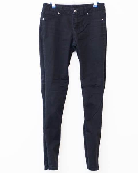 Джинсы изготовлены из полотна средней плотности и толщины, ткань не грубая, эластичная. Брюки несколько месяцев лежали на полке в шкафу, поэтому ткань мятая и сухая, хотя глубокие замятия на ней отсутствуют. Режимы нагрева подошвы и подачи пара остались теми же: максимальными.