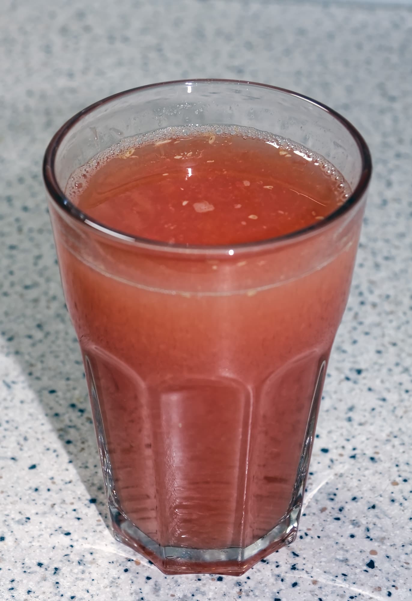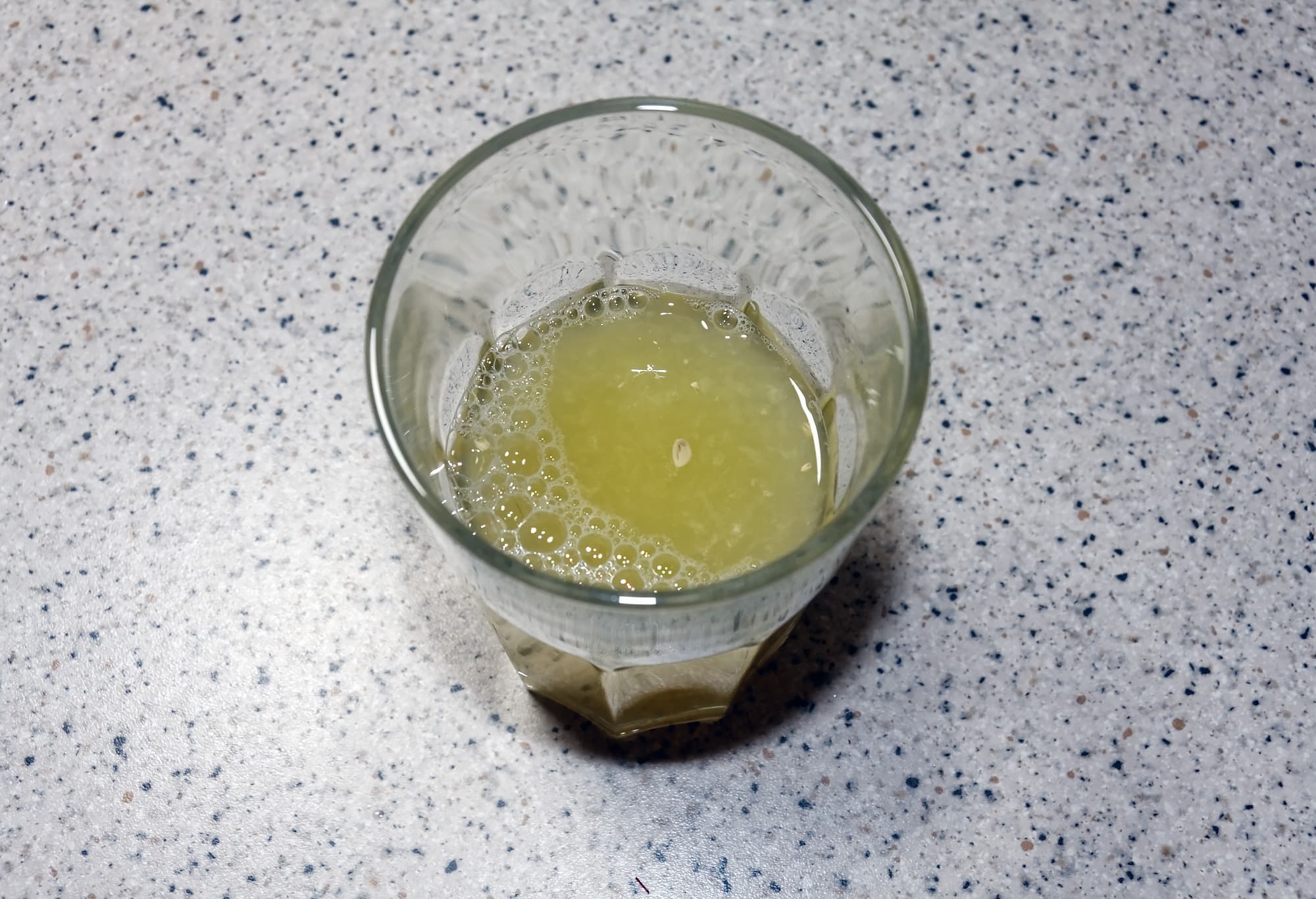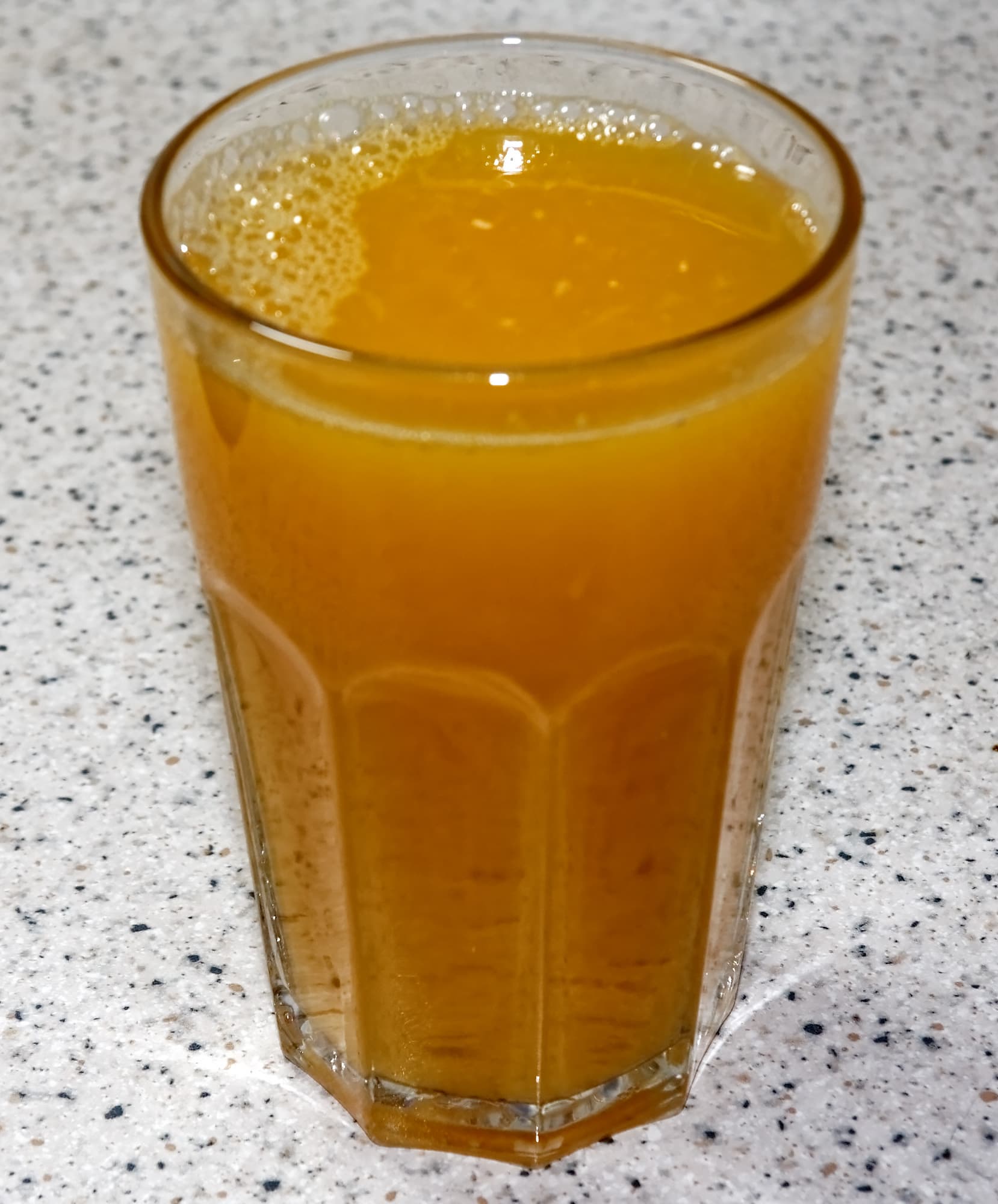 Сок оказался прозрачный, с небольшим количеством просочившихся волокон и, как и в случае с апельсинами, частицами косточек.