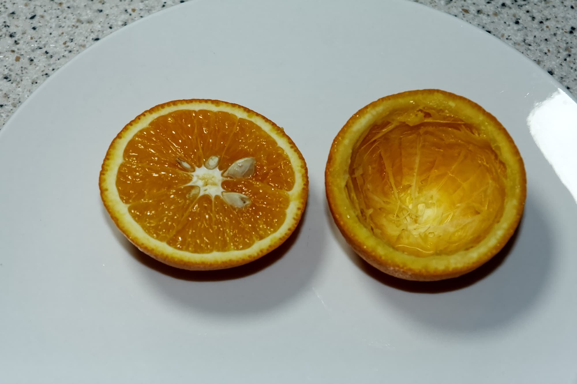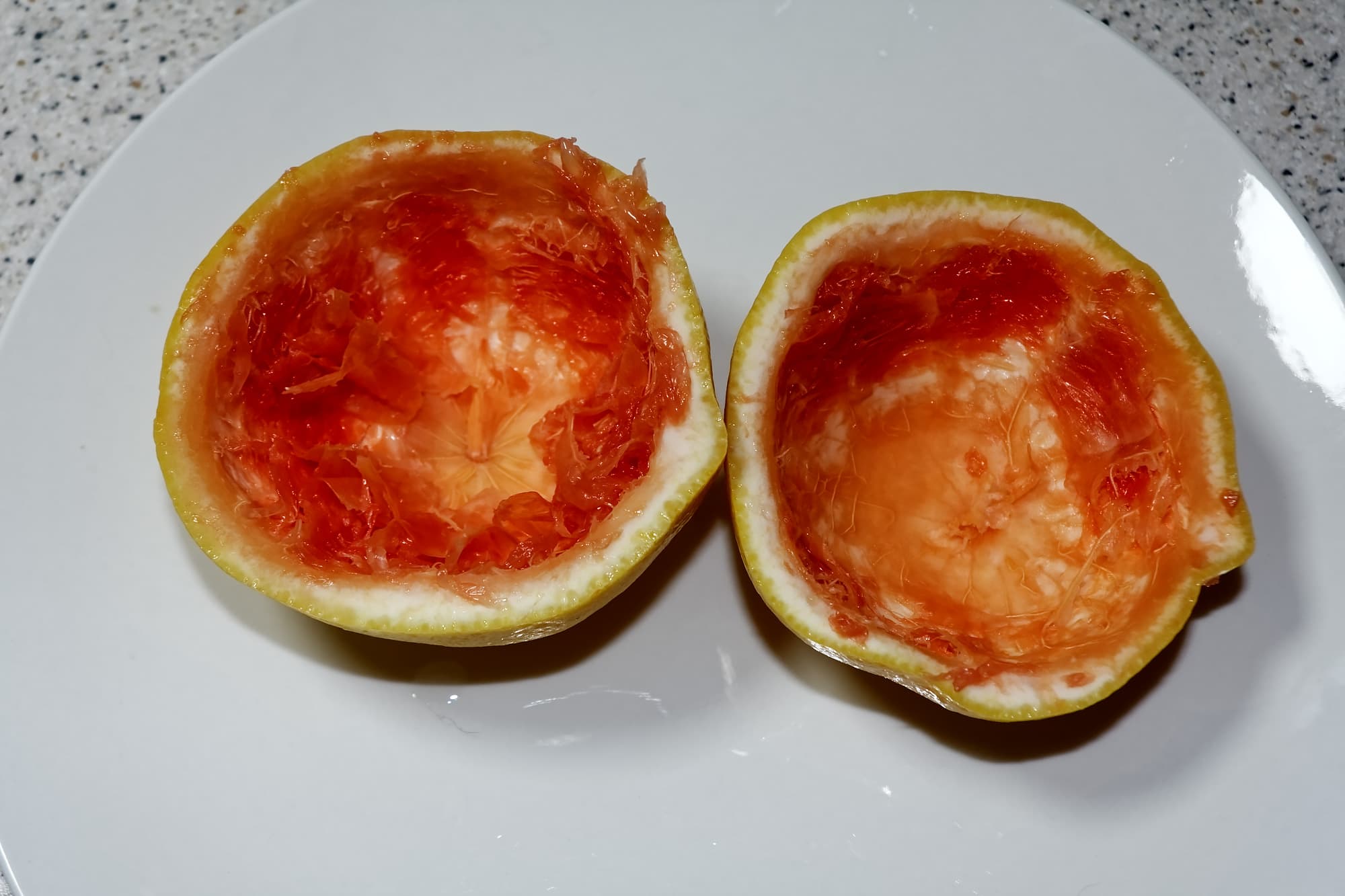 Отходы (грейпфрутовые шкурки), на наш взгляд, оказались отжаты хорошо. Явных участков неотжатой мякоти на них почти не наблюдалось.
