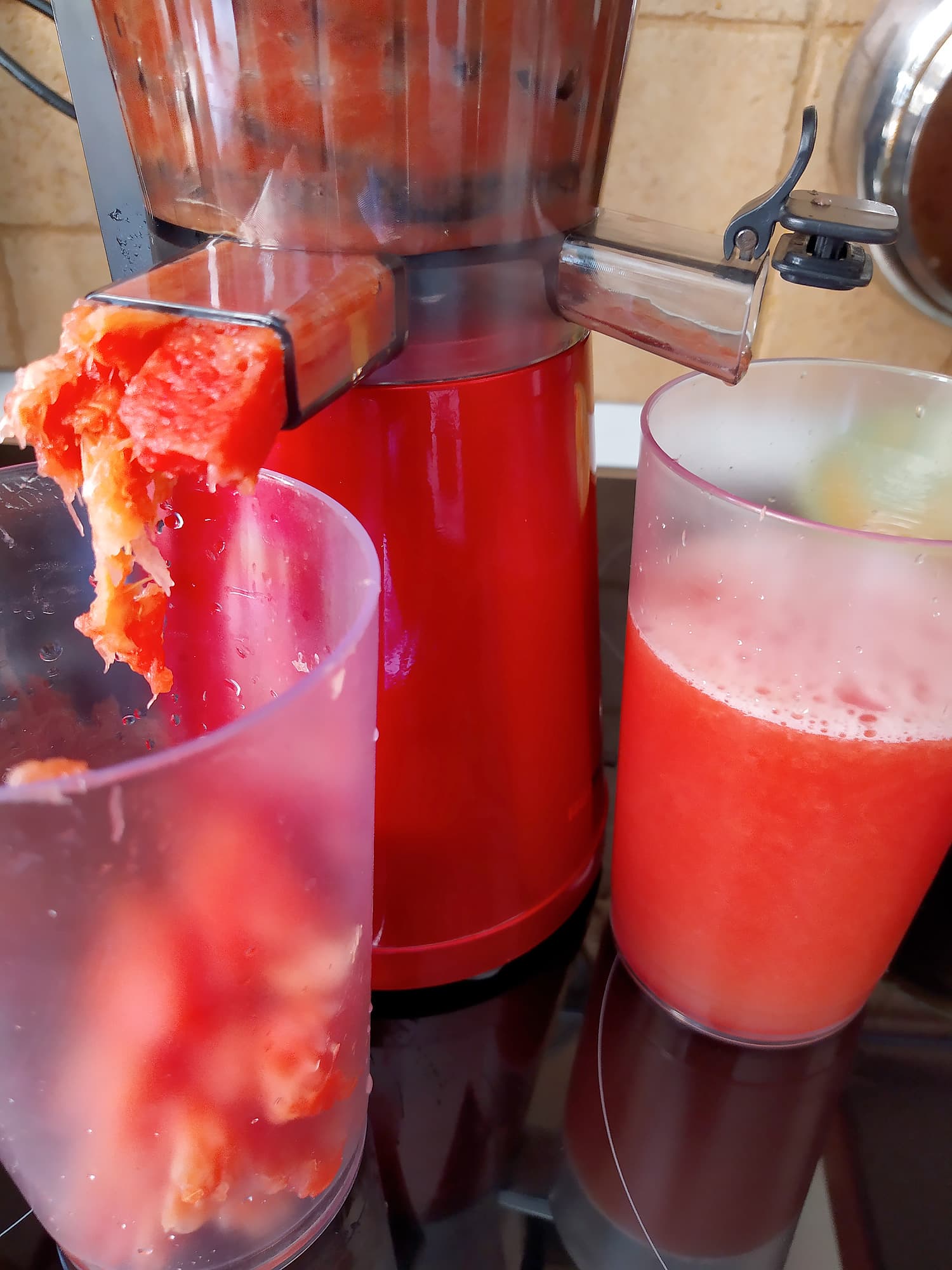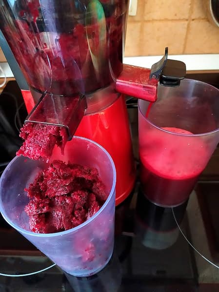 Как и всегда при тестировании соковыжималок, мы провели 4 обязательных теста: яблоки сорта «Гренни Смит», розовый грейпфрут, морковь и капуста. В качестве произвольной программы сделали сок свекольно-лимонный и овощной.