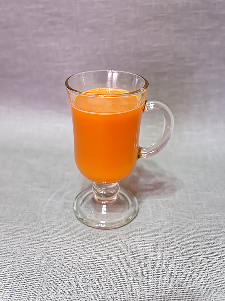 В жмыхе попадались куски неперетертой моркови, отходы были очень влажными. Сок получился очень насыщенного, однородного цвета с плотной оранжевой пеной.