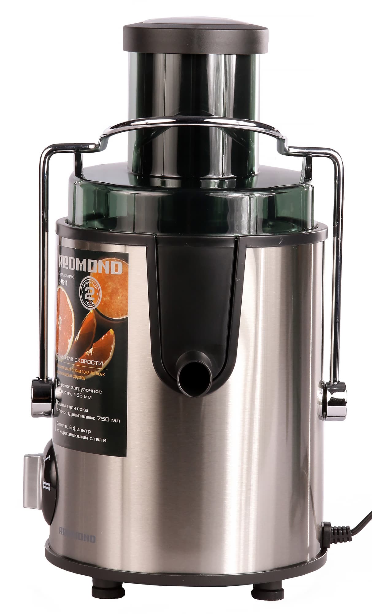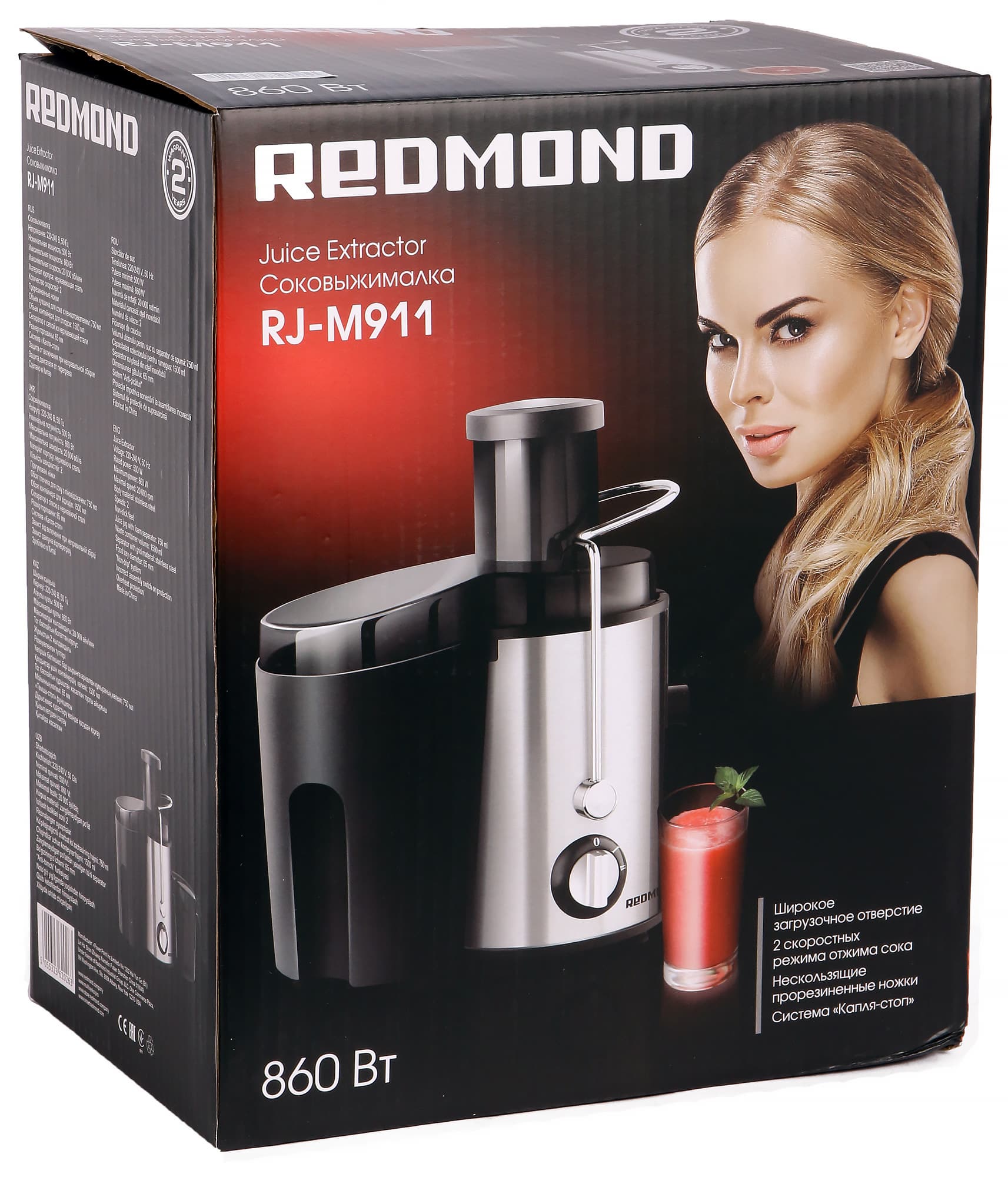 В этот раз компания Redmond прислала нам на тесты центробежную соковыжималку RJ-M911. Прибор отличается большим диаметром загрузочного отверстия, невысокой ценой и двухгодичным гарантийным сроком.