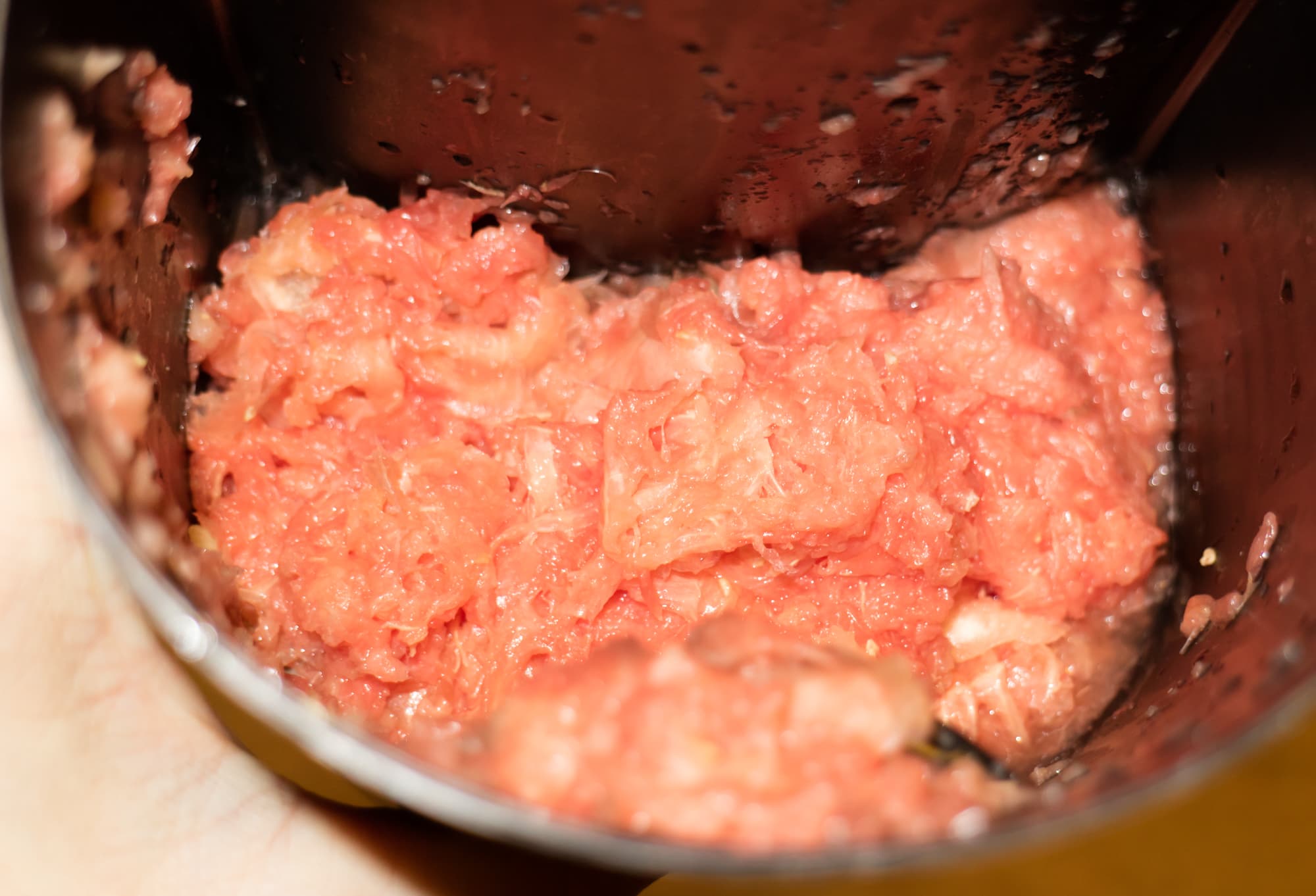 Килограмм мякоти грейпфрута поломали на крупные дольки. Отжимали сок на первой скорости работы. При загрузке сами дольки и сок из них подпрыгивали и разбрызгивались, поэтому загрузку продуктов и их проталкивание нужно было делать очень быстро. Возможно, это и повлияло на результаты теста, в частности быстрое время переработки килограмма сырья.