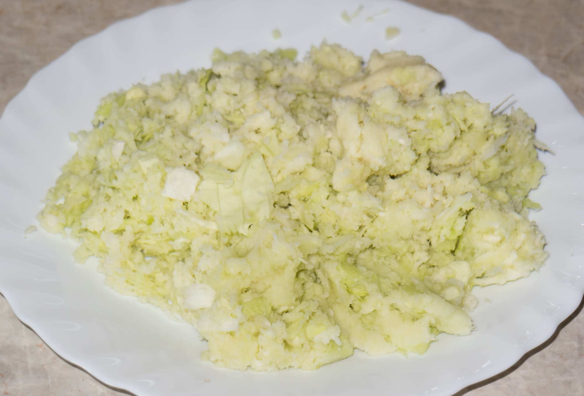 Ровно килограмм белокочанной капусты нарезали на крупные куски вместе с частью кочерыжки. Продукт легко проталкивался в загрузочное отверстие. Хотя часть листьев капусты рассыпалась по дороге от разделочной доски до раструба соковыжималки и мы были вынуждены тратить время на их сбор и пропихивание, сок был получен довольно быстро. Соковыжималка работала на второй скорости.