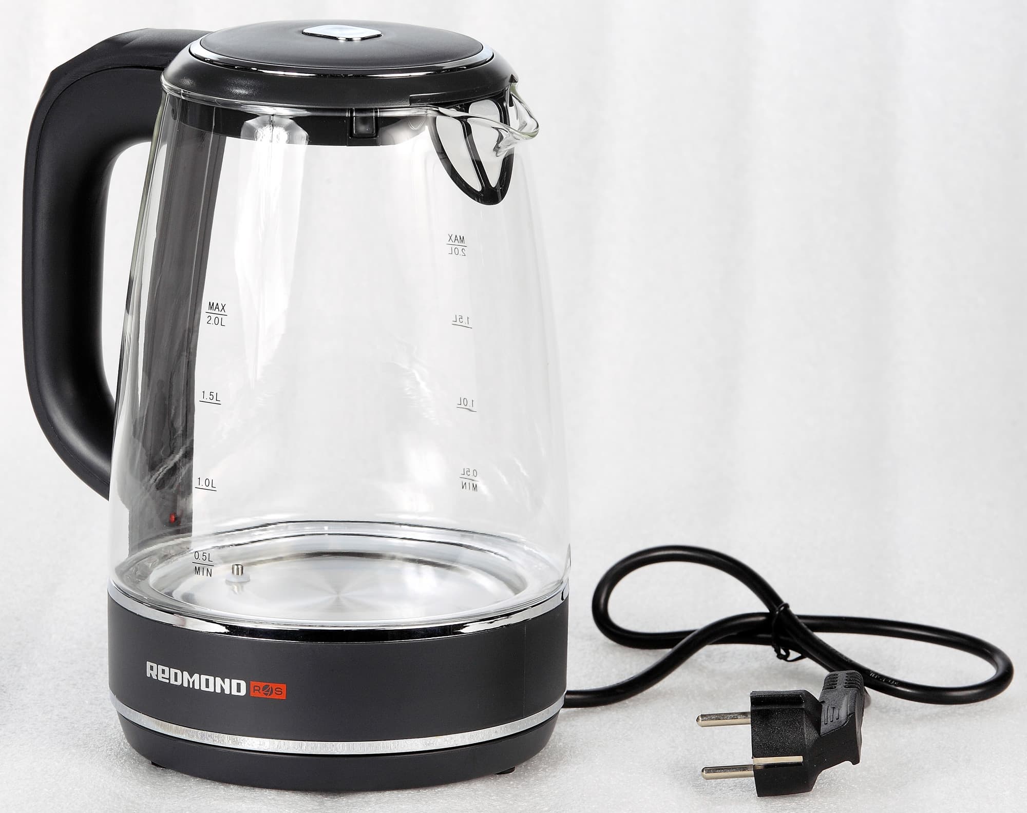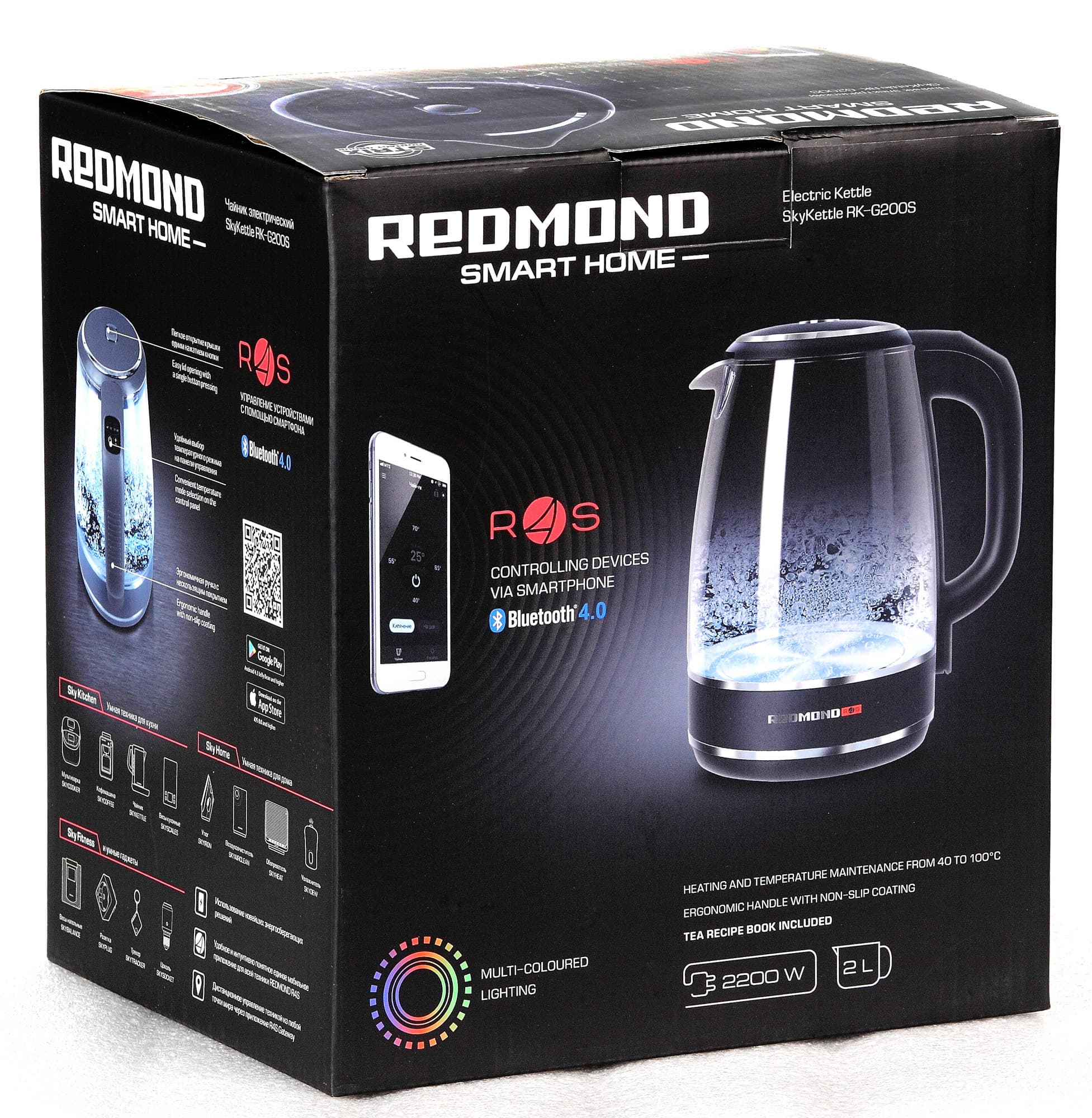Внушительный объем, 4 поддерживаемых температуры (плюс кипячение), стеклянная колба, разноцветная светодиодная подсветка, отключаемый звуковой сигнал обо окончании процесса, блокировка от детей, управление по Bluetooth — Redmond реализовала в RK-G200S, кажется, все, что только можно реализовать в чайнике. И все получилось: мы не нашли у протестированного продукта ни одного серьезного недостатка. Фактически, за цену обычного среднестатистического чайника нам предлагают устройство с максимальным «фаршем», который только вообще бывает у приборов данного типа.