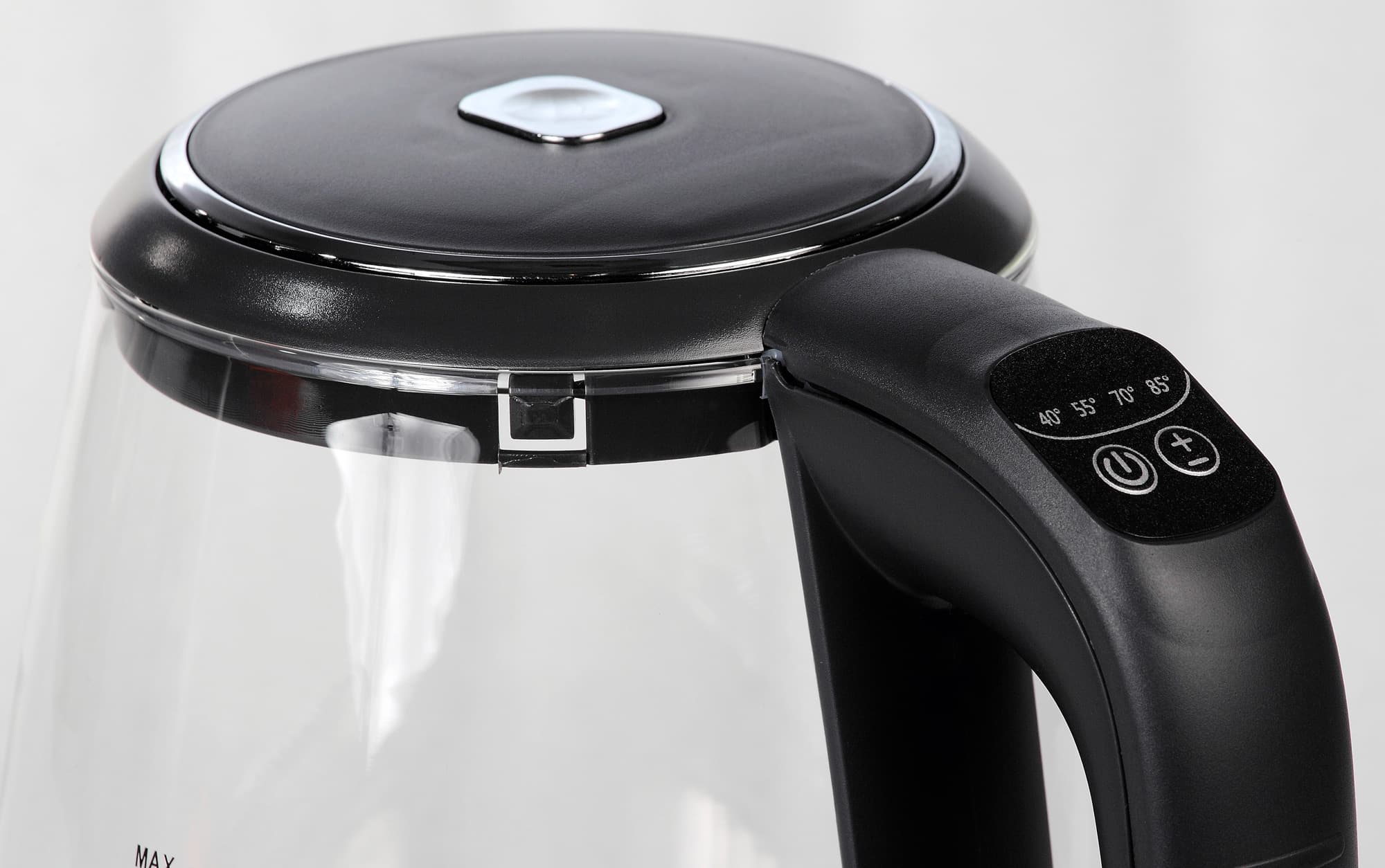 Наливать в чайник воду удобно, так как крышка после открывания занимает строго вертикальное положение. Кнопки на ручке легко нащупываются даже вслепую, а учитывая, что их всего две, расположение и назначение каждой запоминается быстро.