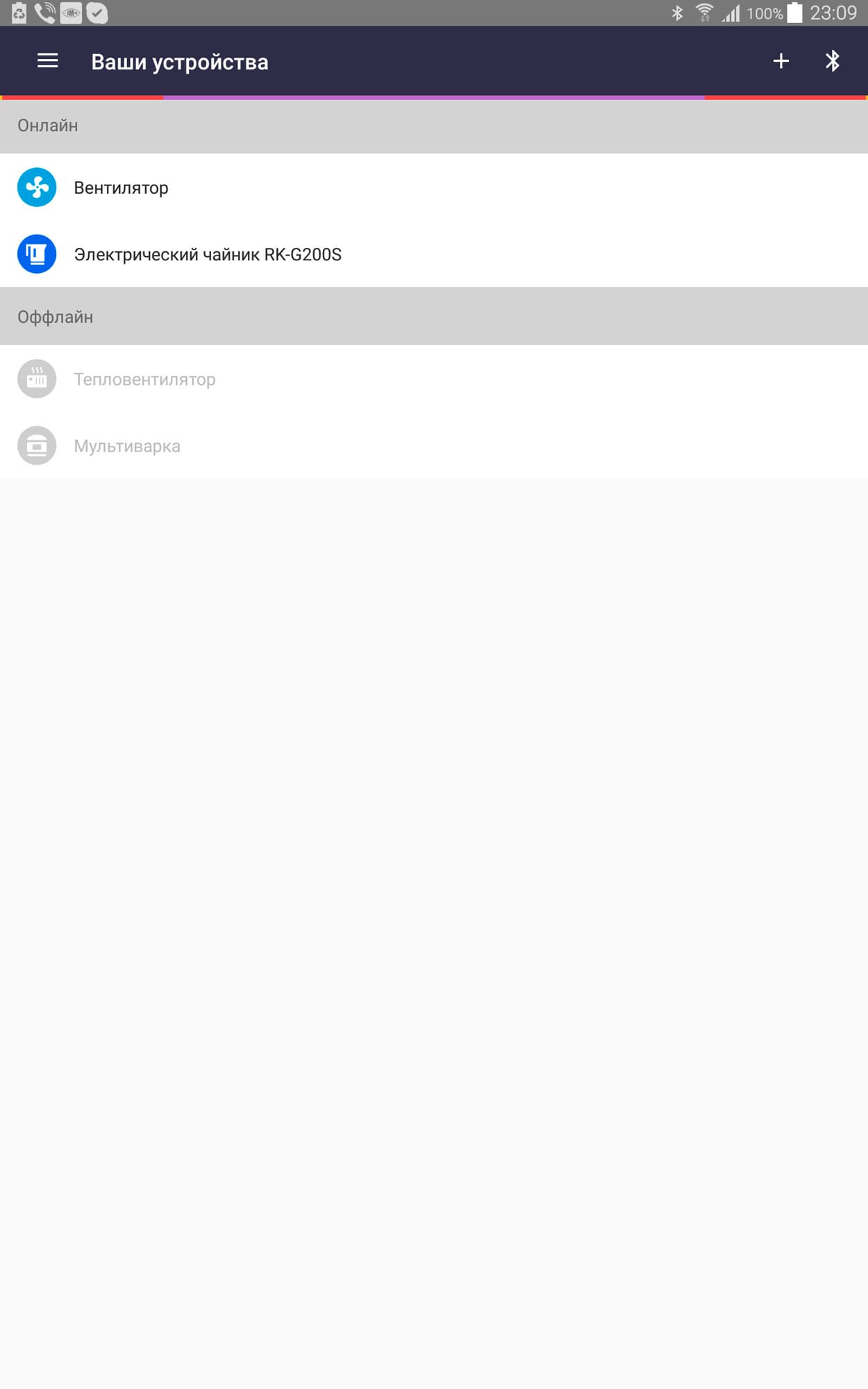 После процедуры «регистрации» (не будем описывать ее здесь, поскольку получится или очень длинно, или неполно — лучше прочтите инструкцию) чайник можно увидеть в общем списке в разделе «Онлайн».