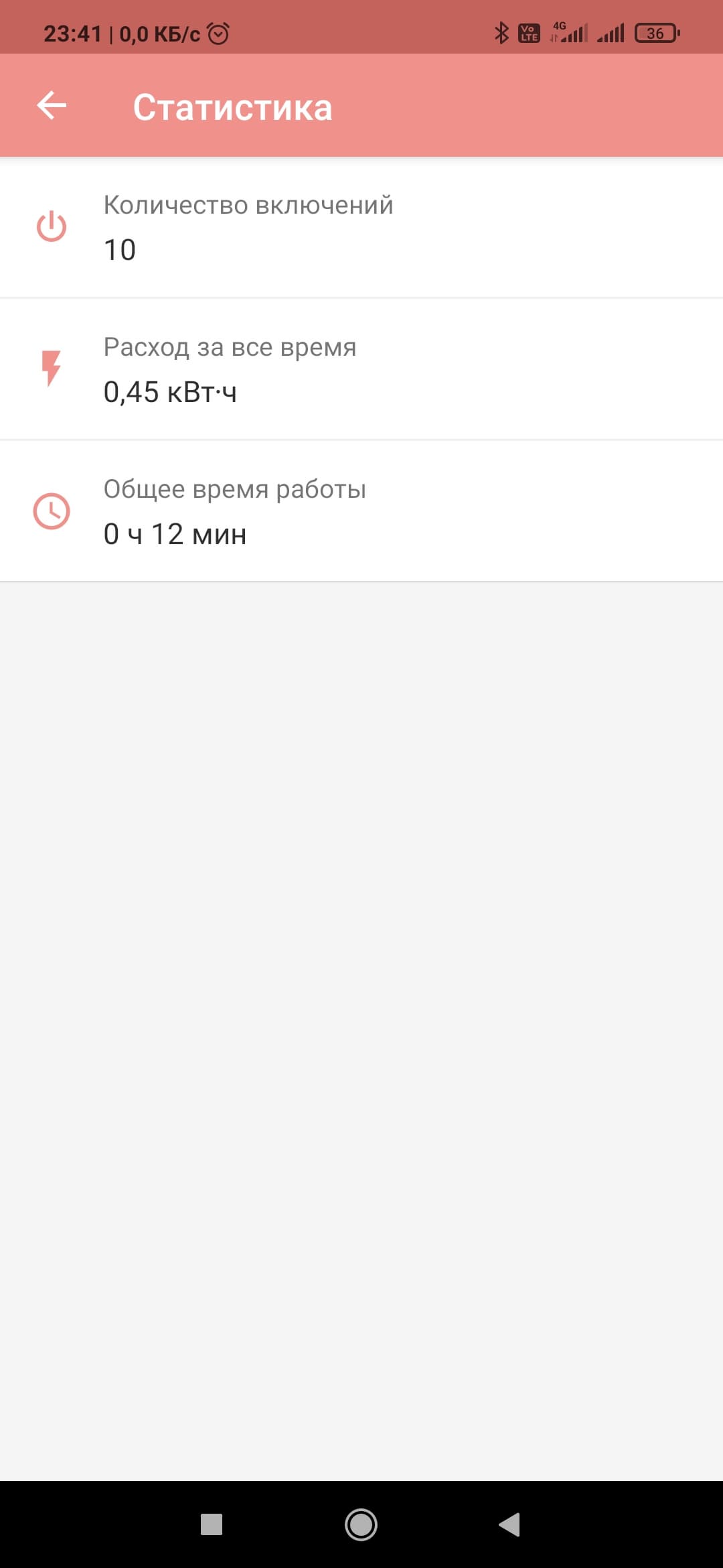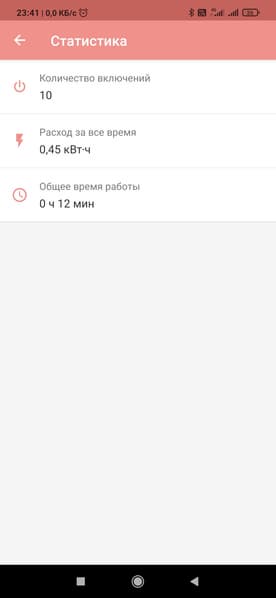 Ну а как наиграетесь с подсветкой и разными режимами, можно залезть в раздел «Статистика» и посмотреть, сколько энергии израсходовал чайник. Сбросить ее, правда, не получится.