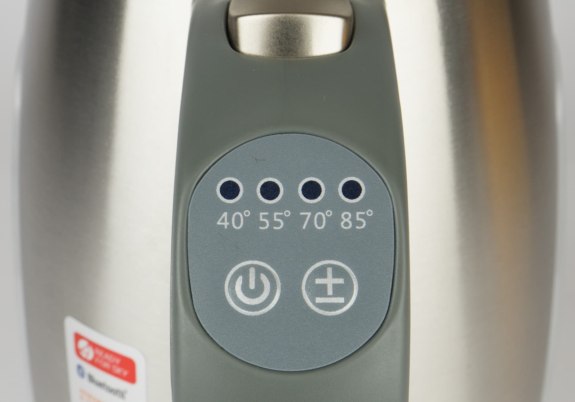 | Температуры | на ручке: 40 °C, 55 °C, 70 °C, 85 °C, 100 °C из приложения: от 35 до 90 °C с шагом 1 °C, плюс 100 °C |